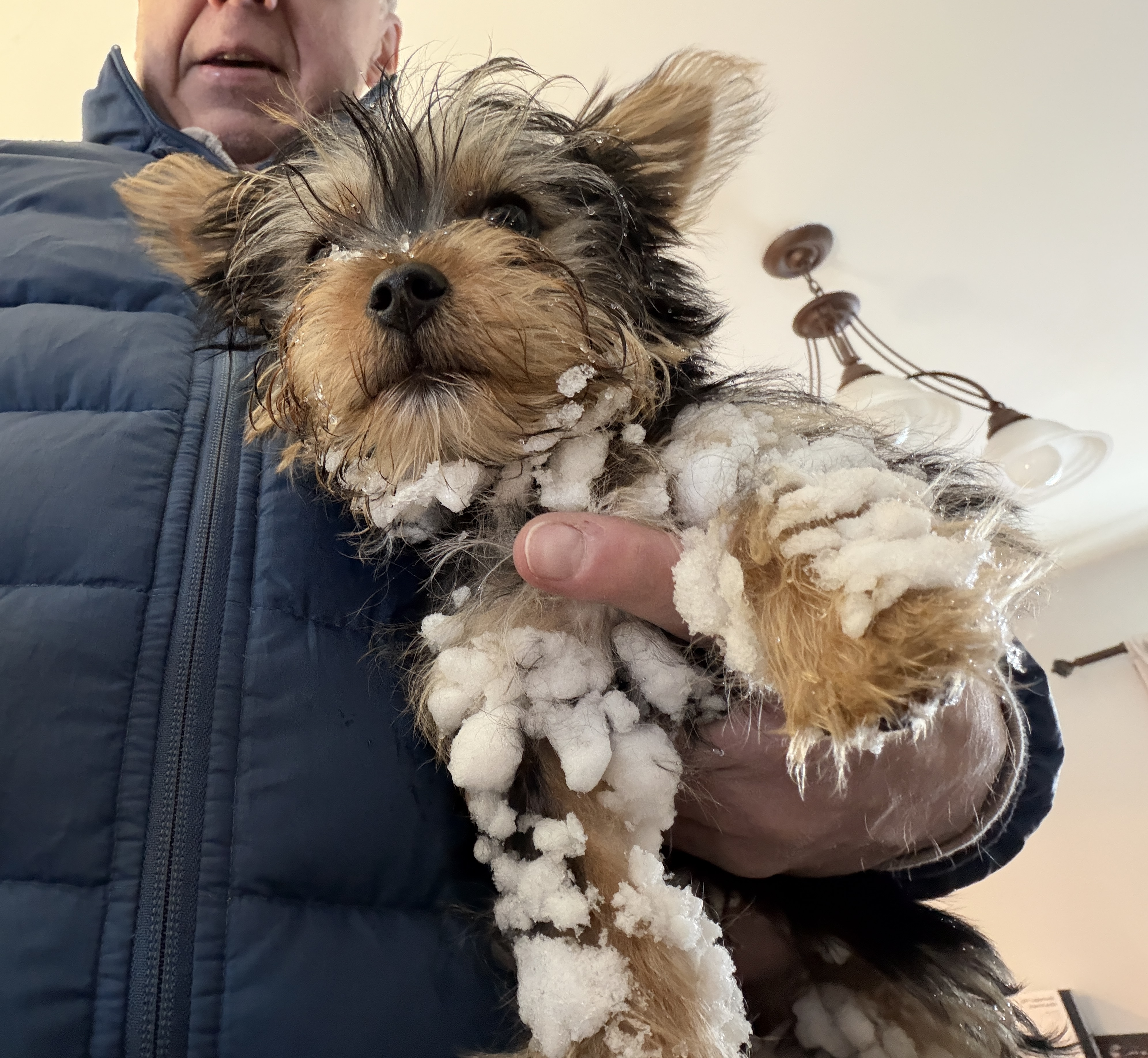 My wife and her two brothers got together and bought their mother a mini-Yorkie - something she'd always wanted. "Daisy Mae" was given to her on Christmas Eve, and unfortunately Val's mom entered the hospital - for what turned out to be the final time - three days later.So now the little 3 1/2 lb interloper has invaded our household as her brothers weren't able to take her. Millie - our 5 lb Cavapoo seems unimpressed so far.Oh - almost forgot: