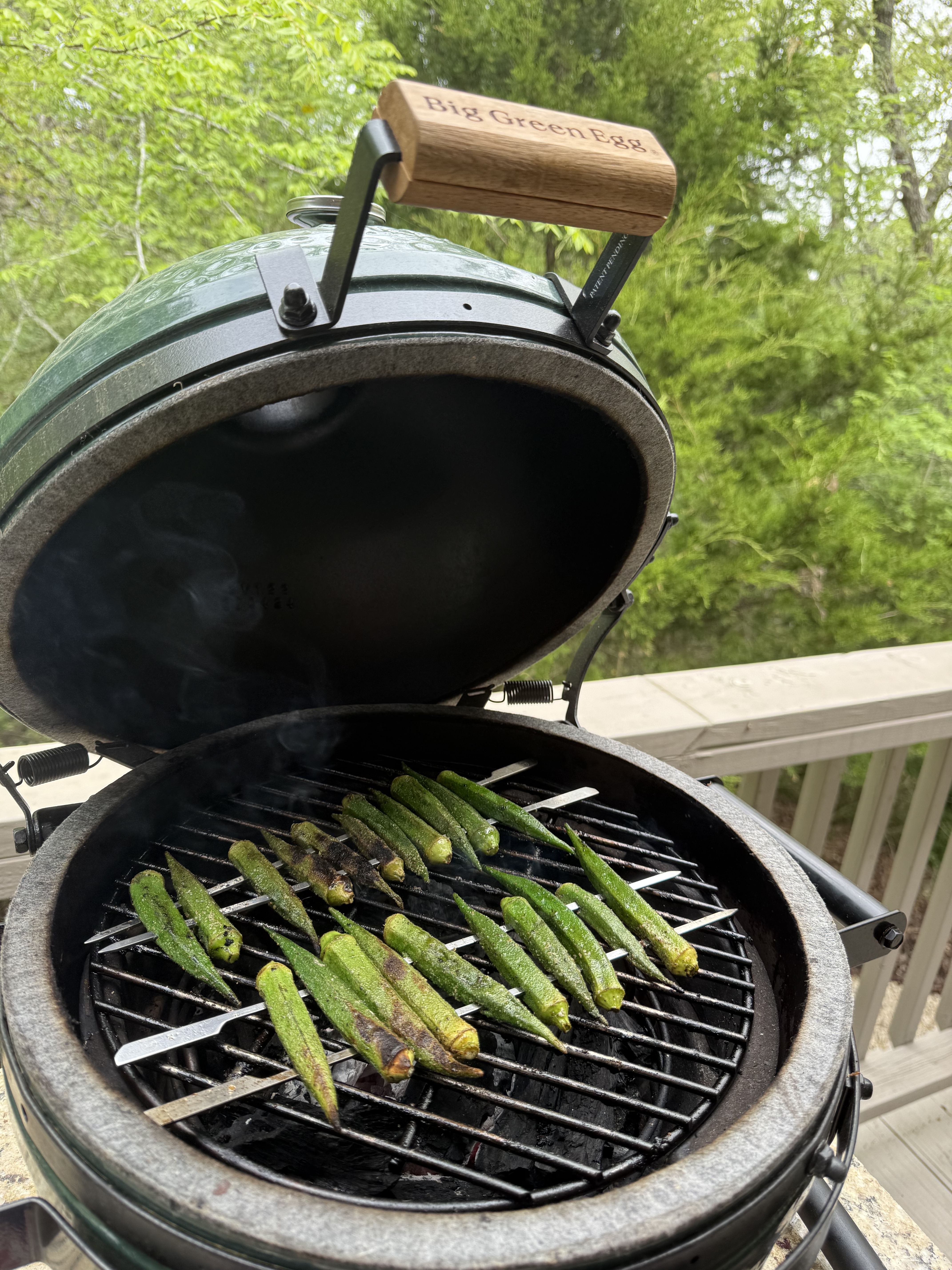 You have the okra raised up on rods - why not directly on the grill?