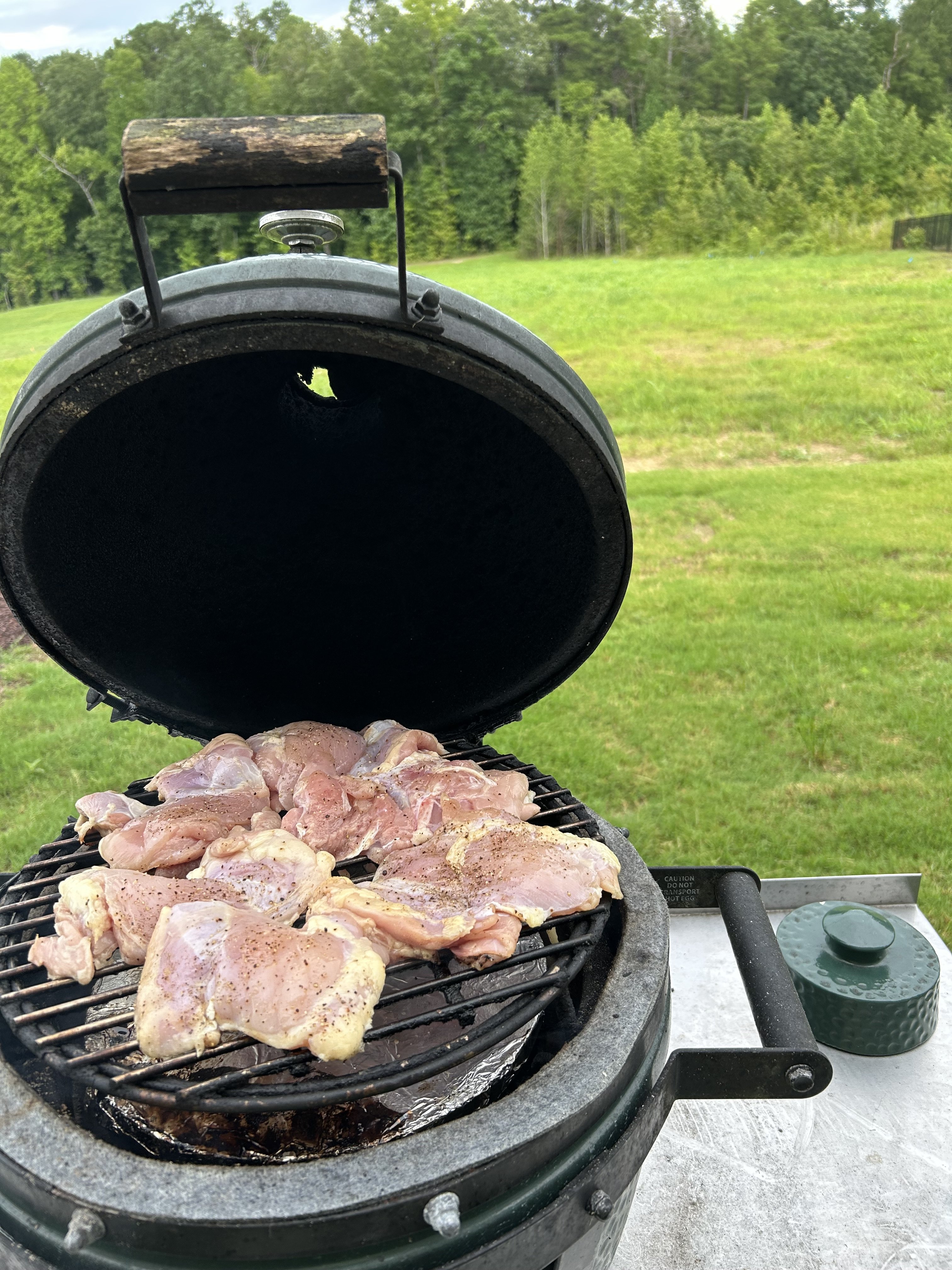 I have had a large egg since 2011, had it delivered the first day we moved into our first house. I would have had it earlier, except the creepy neighbor in my duplex said the smell of charcoal from my Weber went into her apartment—well it wasn't anything like the mothballs she had her poor husband dump under our porch...while we were having dinner with friends!!!