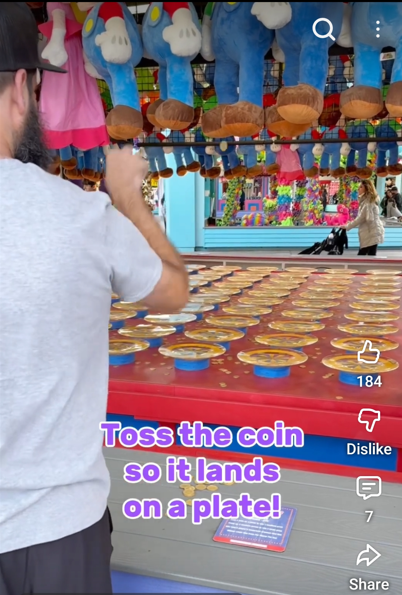 I figured out a hack to beat the coin toss game at the carnival. The secret? I threw the coin gently at the prizes (all tall hats) hanging above the plates, it would slide off the brim and drop vertically, with a good odds of landing on a plate and stay after a few localised flips/bounces. My success rate was about 1 in 2-6 attempts IIRC  =)