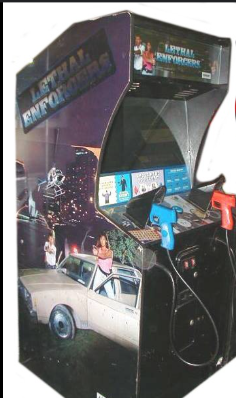 Some friends and I were probably 15, staying at a hotel near Cedar Point (Roller Coaster Park in Sandusky OH).  They had a Lethal Enforcer Arcade game off to the side.  Well, the coin collector forgot to lock it when done collecting.  With the open door, we were able to trip the coin lever as many times as we wanted.  We beat the game!  :-)