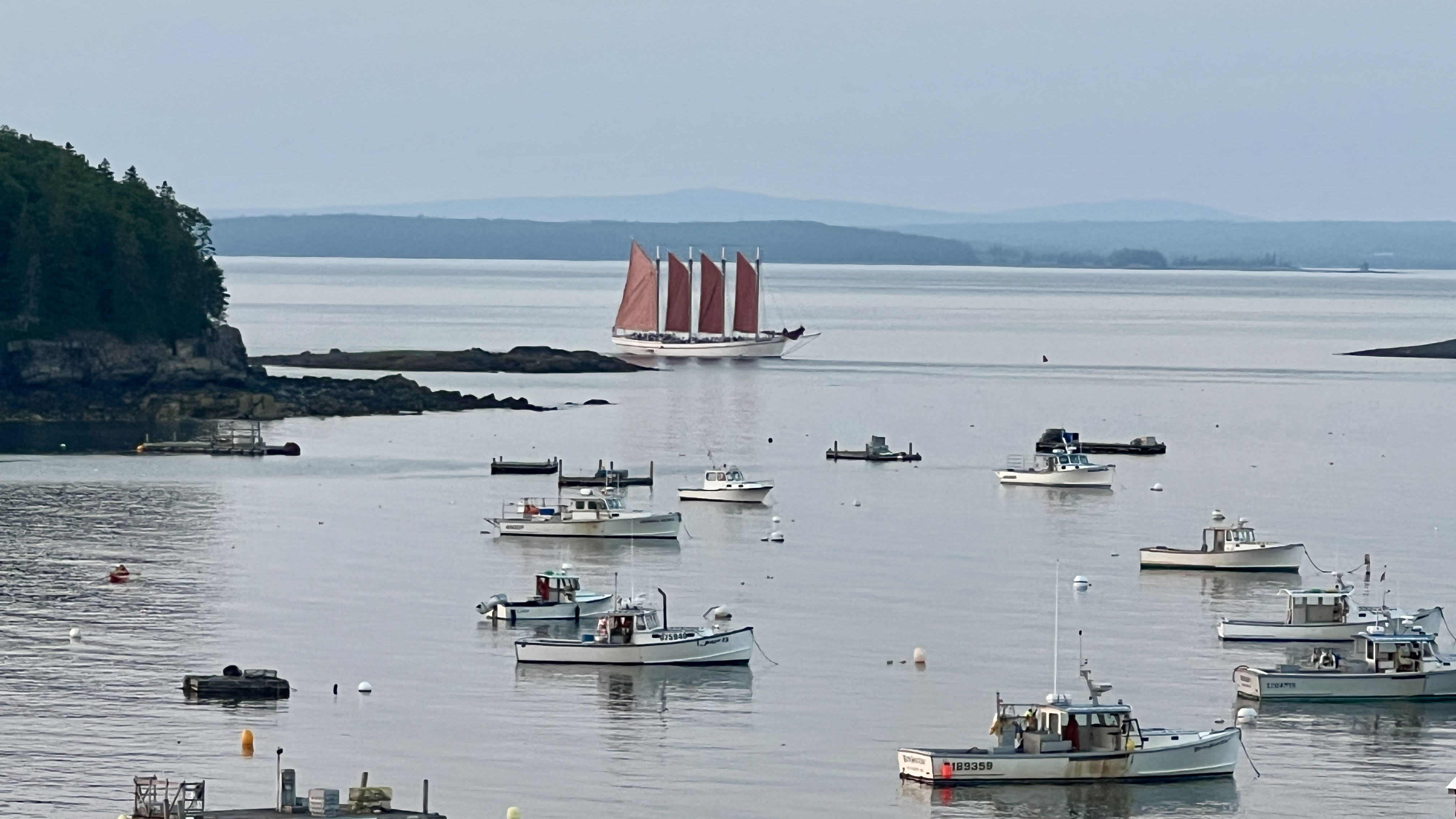 the weather looks about perfect up there for the week. those are what boats are supposed to look likeon the funny side, if your in a restaurant with a beautiful older school bar built in the 80s/90s but more in the favour of bar harbor, look for the initials EHB on the corners. i knew his son eddie haskell