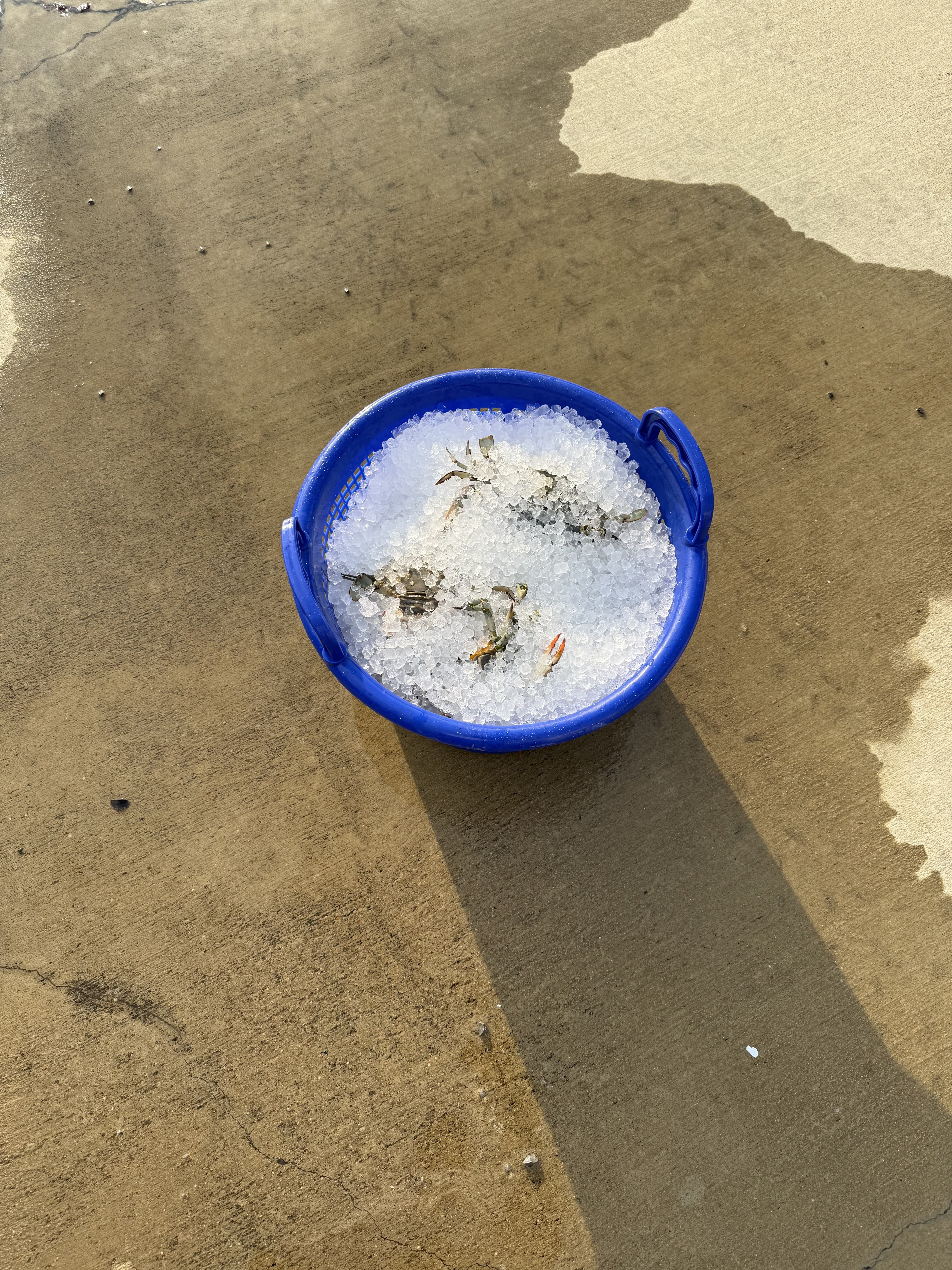 Scored a basket full of crabs on a hand line using chicken thighs.