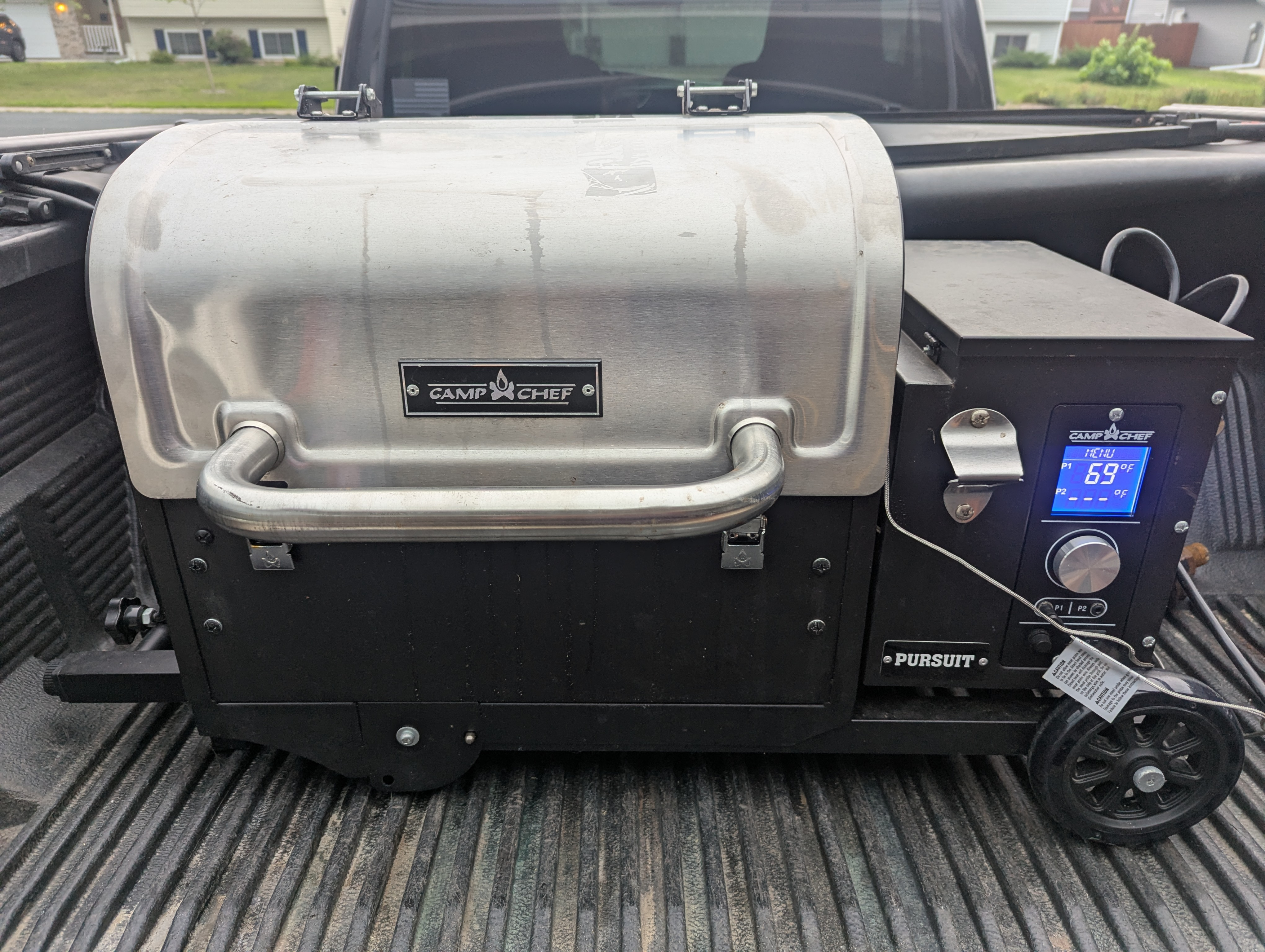Well.... I did something that I said I'd never do. I came home with a pellet smoker! That just sounds and feels wrong. I took the dog on a walk this morning and I stumbled across a Weber Joe and this Camp Chef smoker sitting outside with a free sign on them. Once home I grabbed my truck and went back to the neighborhood and picked it up.