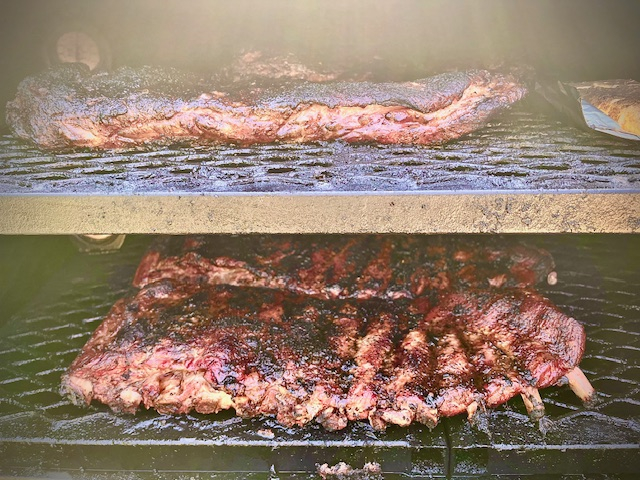 Smoked on the stick burner. The pic has no $$$ shot as the cook was 5 St Louis trimmed spares that made it to the local small staffed firehouse earlier this afternoon.