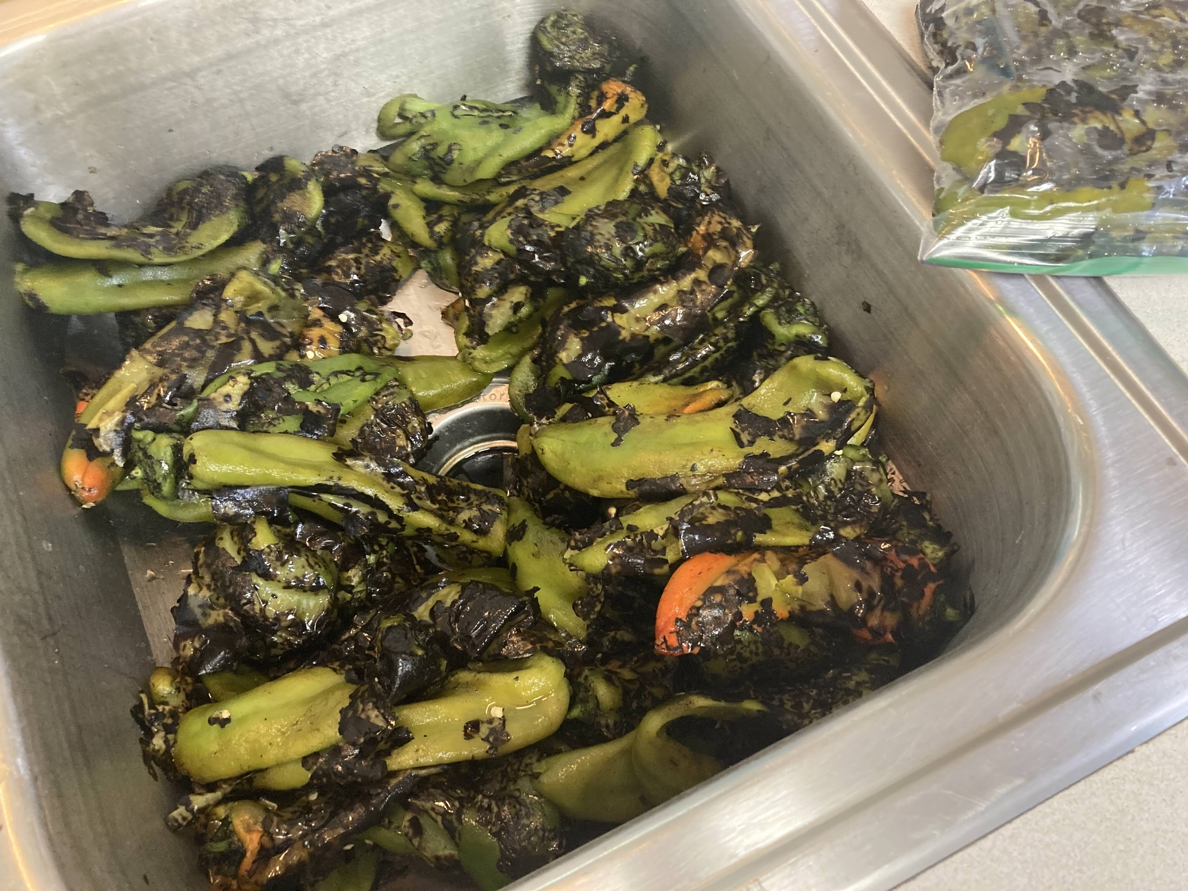 Instead of letting them steam for an hour as I usually do, I tried icing them as someone here mentioned (can't remember who but Thank You!) Threw two bags of ice on them and let them sit an hour, then poured off the ice water (everything was fully chilled down). Lookee there, they practically peeled themselves! They're bagged and put in the freezer, won't overwork my old freezer as they were already cold, neat! They didn't carryover-cook to mush like they sometimes do steaming, nice and firm; so I may try making relleños again with them, made a mess with the softer chiles in the past.Las Vegas, NV -