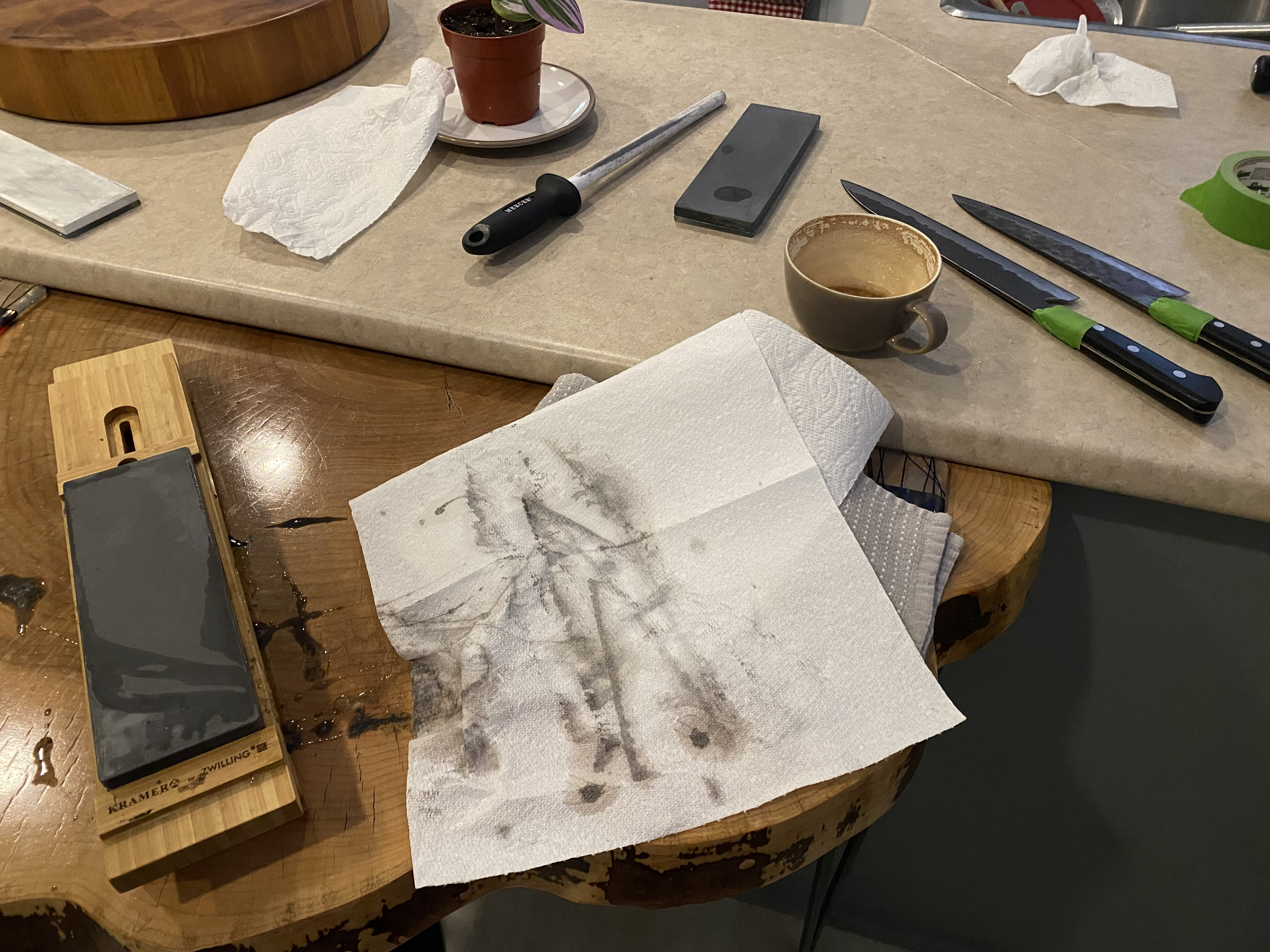 Very early this morning, I touched up my two favourite knives. They get daily use - sometimes heavy - and hadn’t seen a sharpening stone since last year.