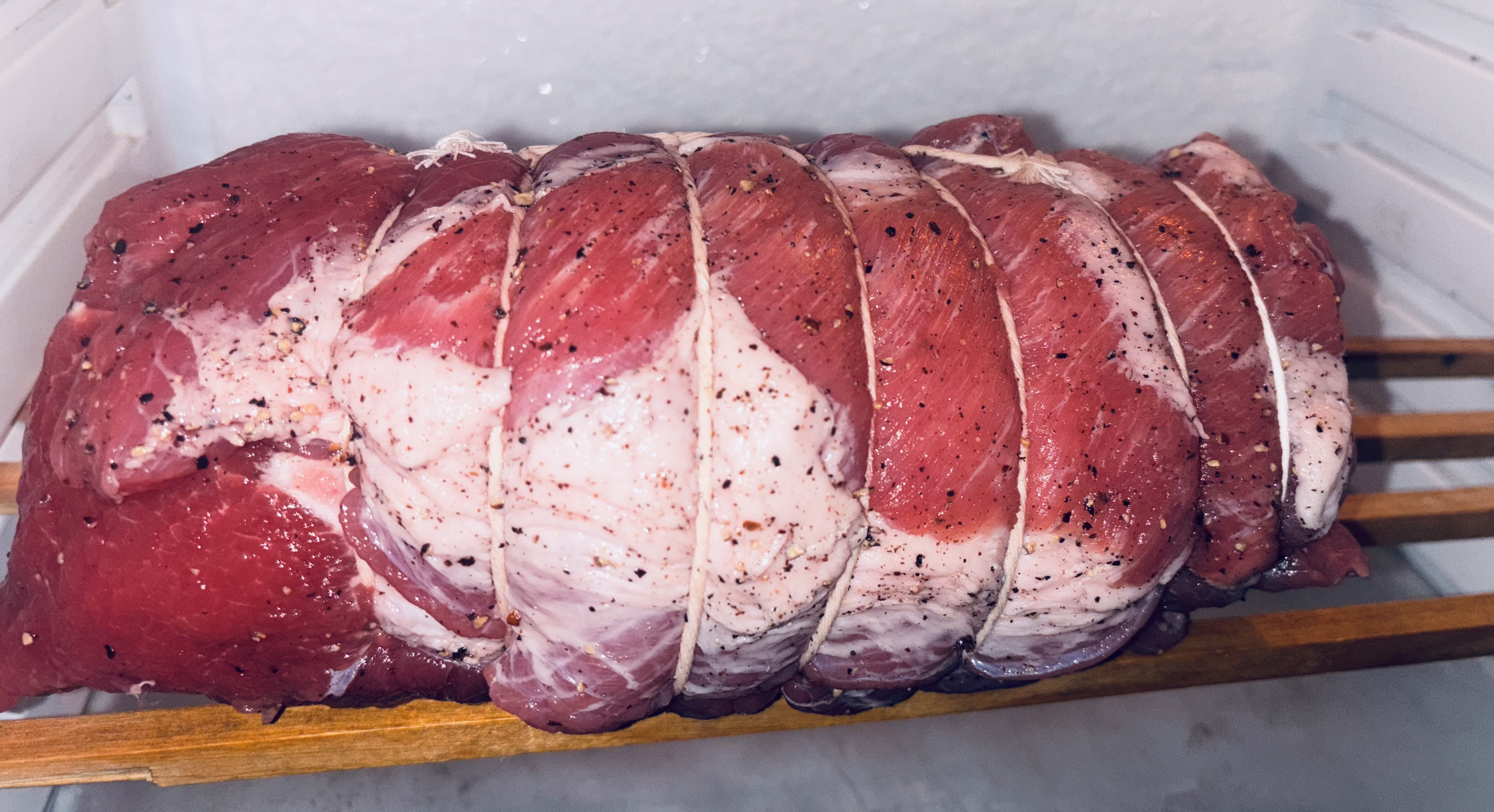 Buckboard( money muscle ) Bacon … dry cured for a few weeks, hanging out and drying a bit before smoking in a few days …