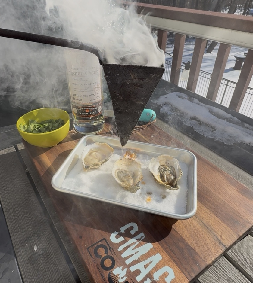 - Grilled Oysters finished with Wagyu Fat from the Flambadou 🔥