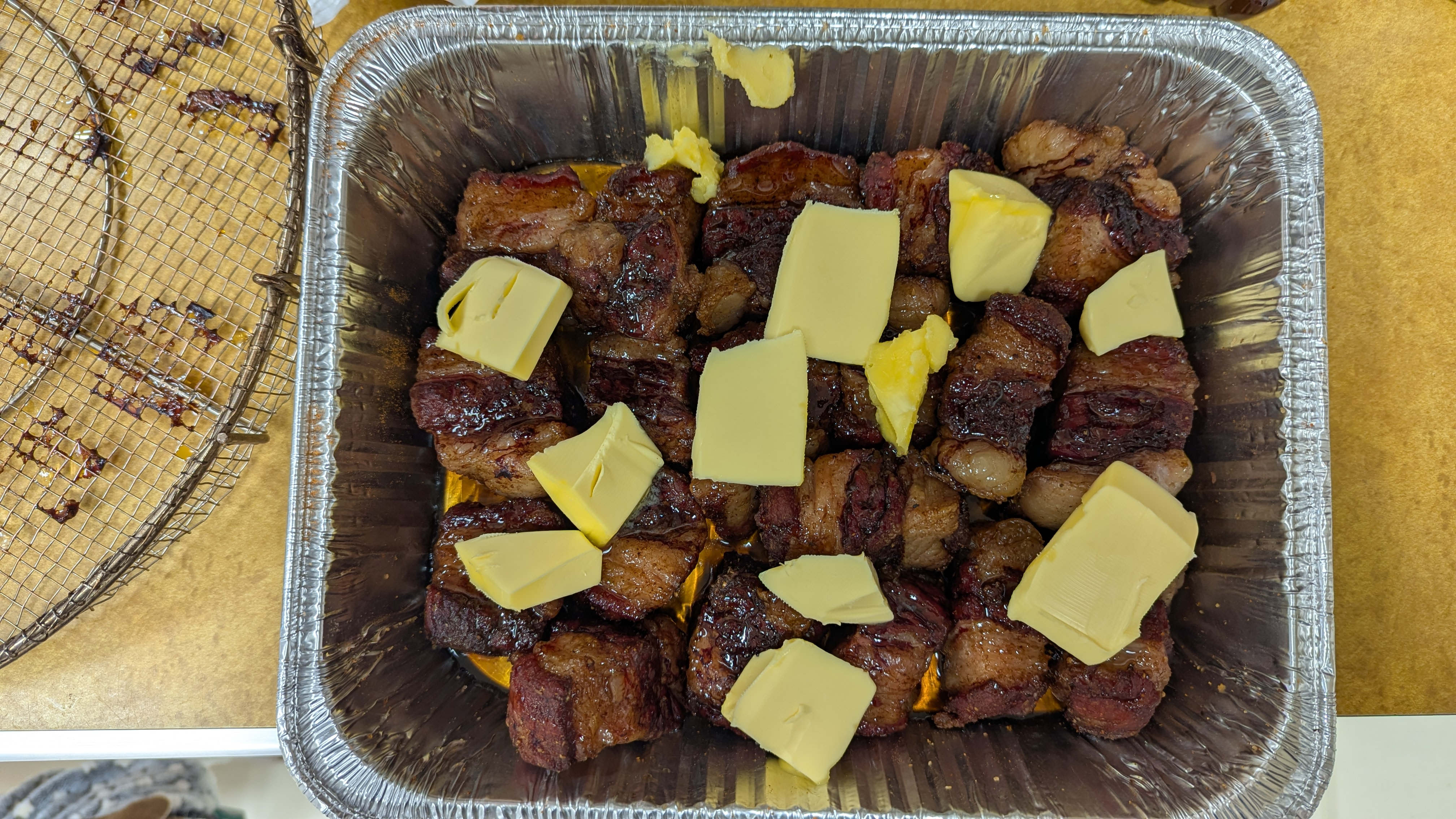 Way to shine!!! Just wondering here...after you egged them and not before could you have identified that membrane and cut it out? I know that would have doubled the number of pieces by making them thinner so probably have to shorten the brazing time, but so be it.