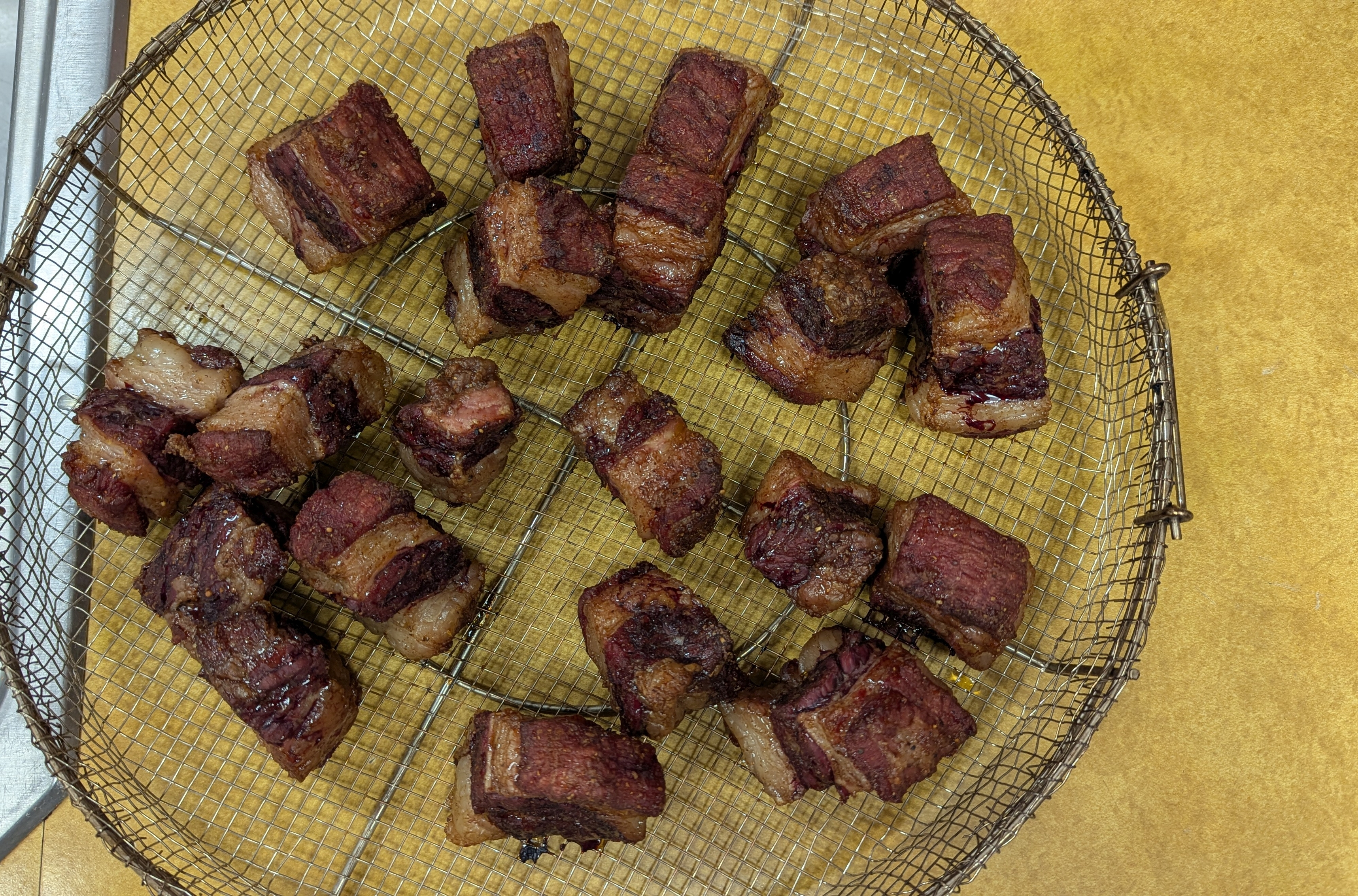 my thought is the protein, when cubed , will become tender long before proper rendering… either way a solid cook and I will be ordering a belly to give it a go