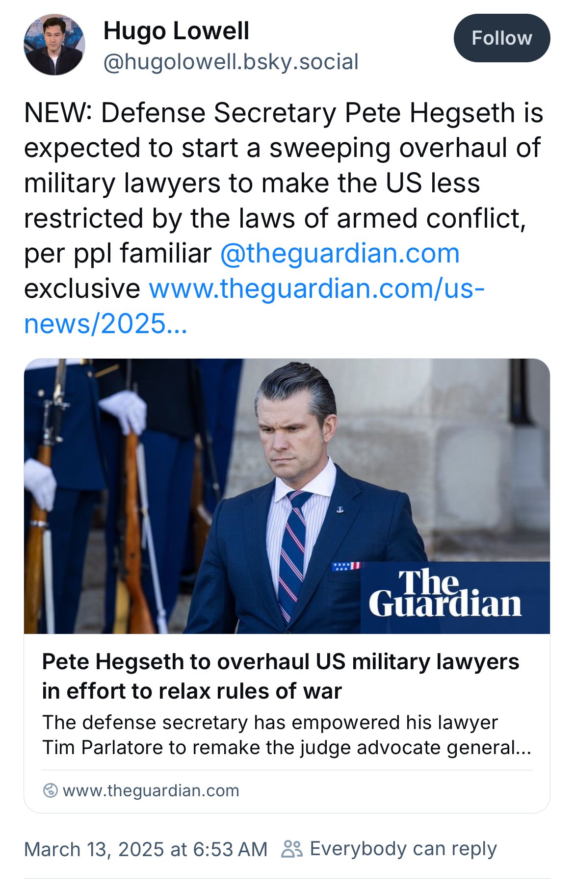 Excerpts from The Atlantic article below-"The Trump administration has provided many jaw-dropping moments, but few have been as shocking as editor in chief Jeffrey Goldberg’s scoop published today. Goldberg reported on how he was inadvertently added to a discussion of a military strike on Houthi militias in Yemen, conducted over the encrypted messaging app Signal. In essence, a reporter was invited to listen while the nation’s top security officials weighed and debated a military action, and was sent detailed information about the strike.