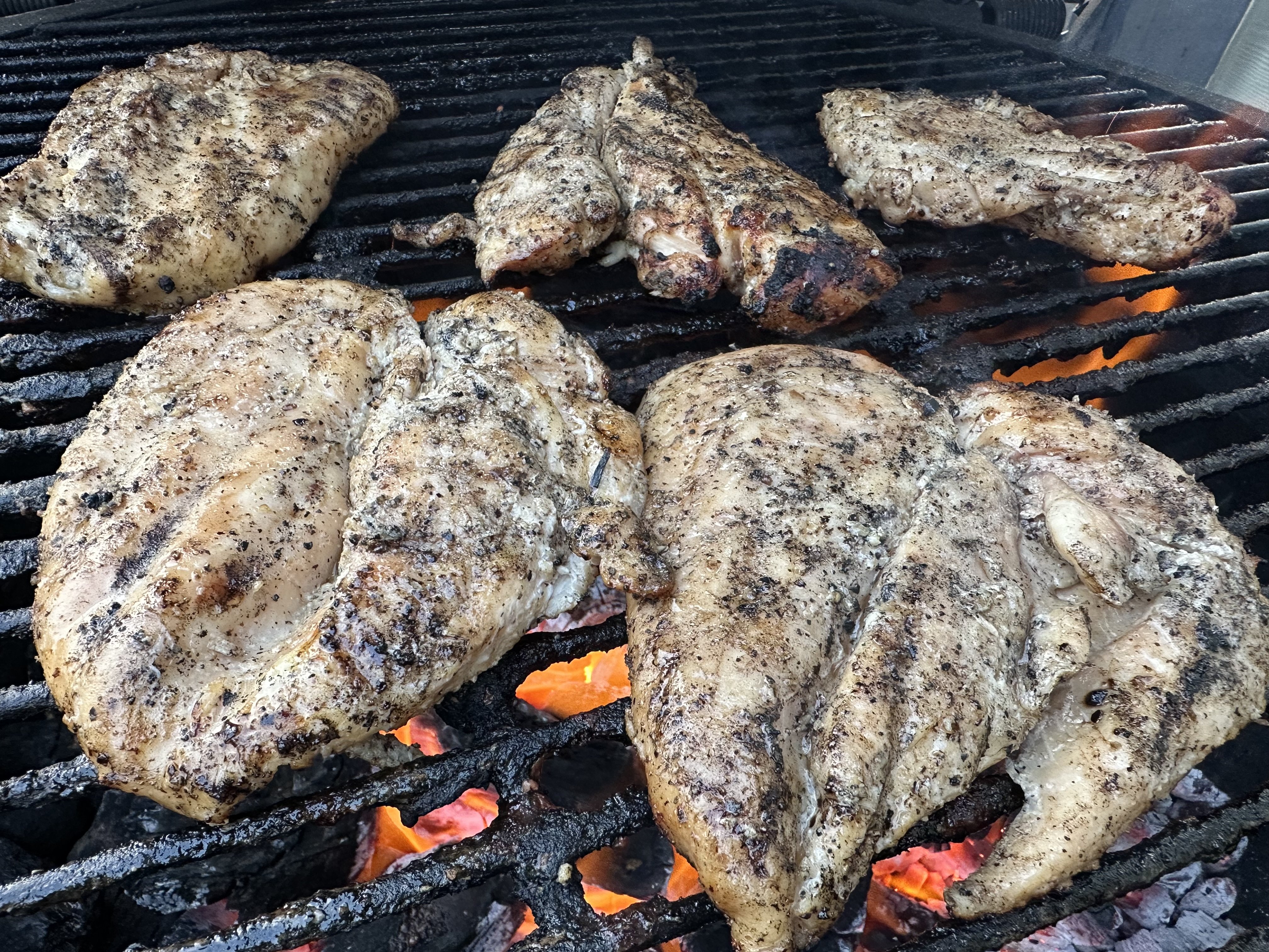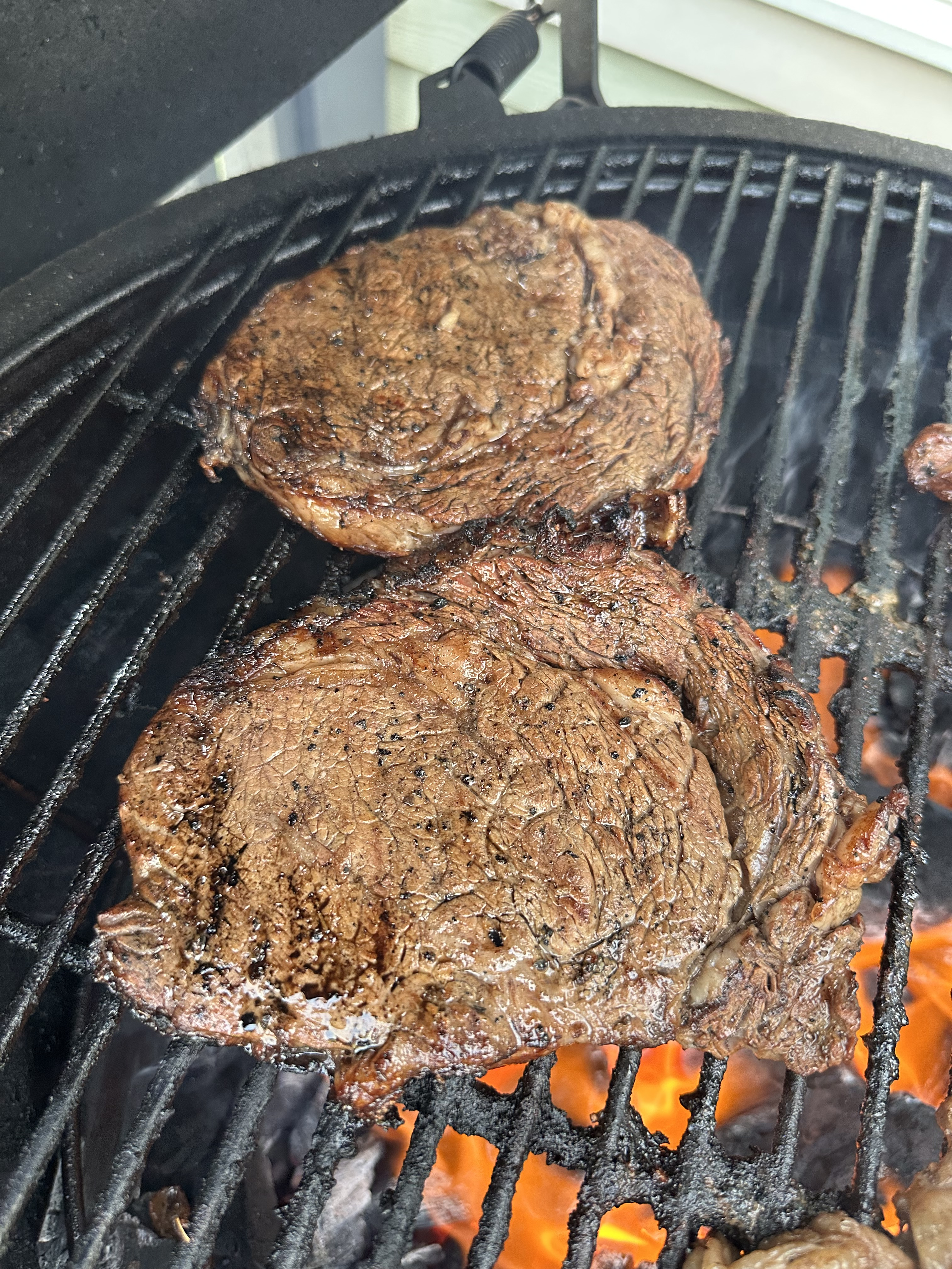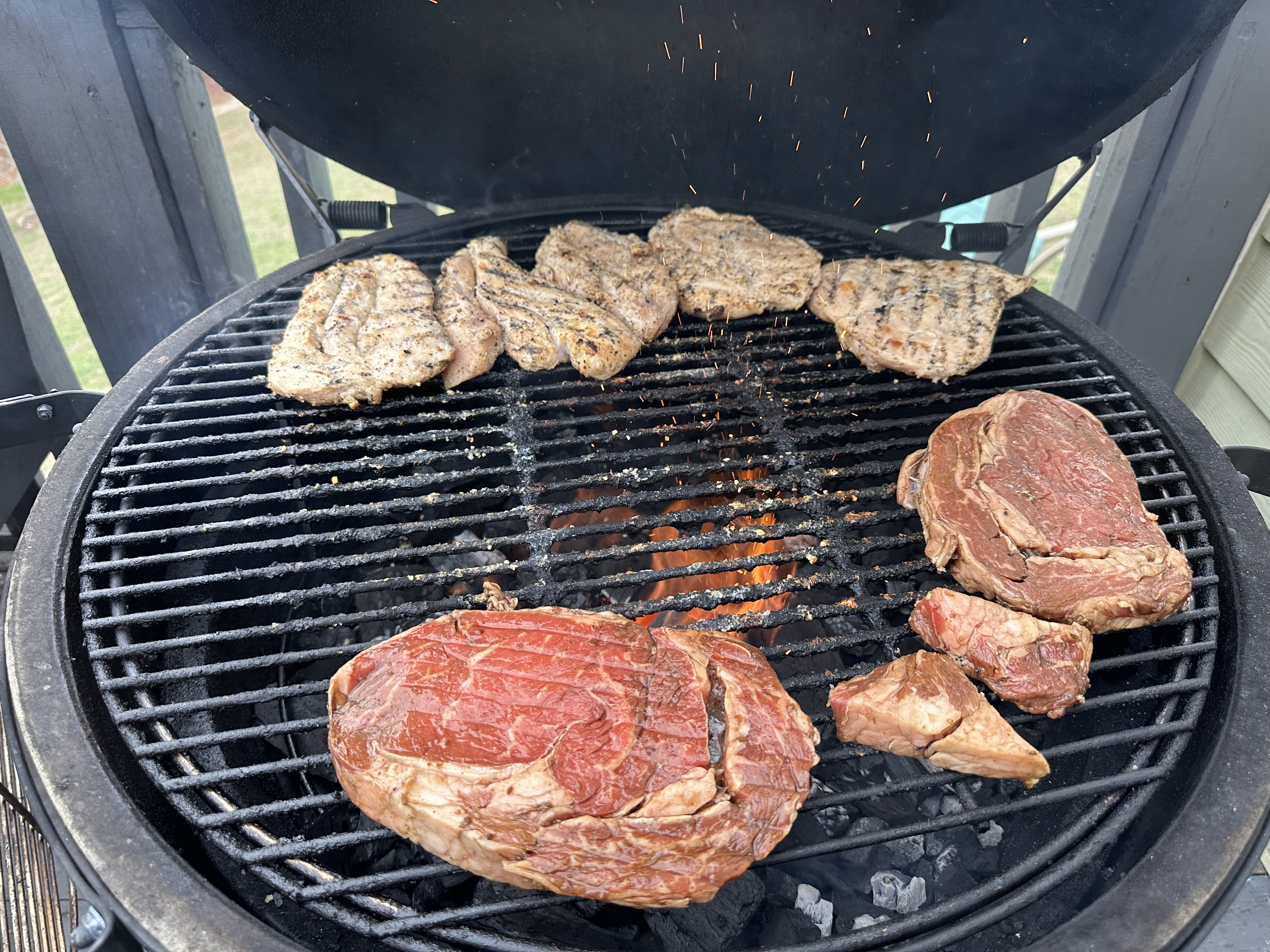 I was beaming with pride that she wanted a medium rare ribeye. So we had ribeyes and chicken for a birthday party sleep over. Was pretty loud over here. Steaks turned out money. Raised direct. Cooked 9 steaks but no pics. Split breast with Kinders the blend