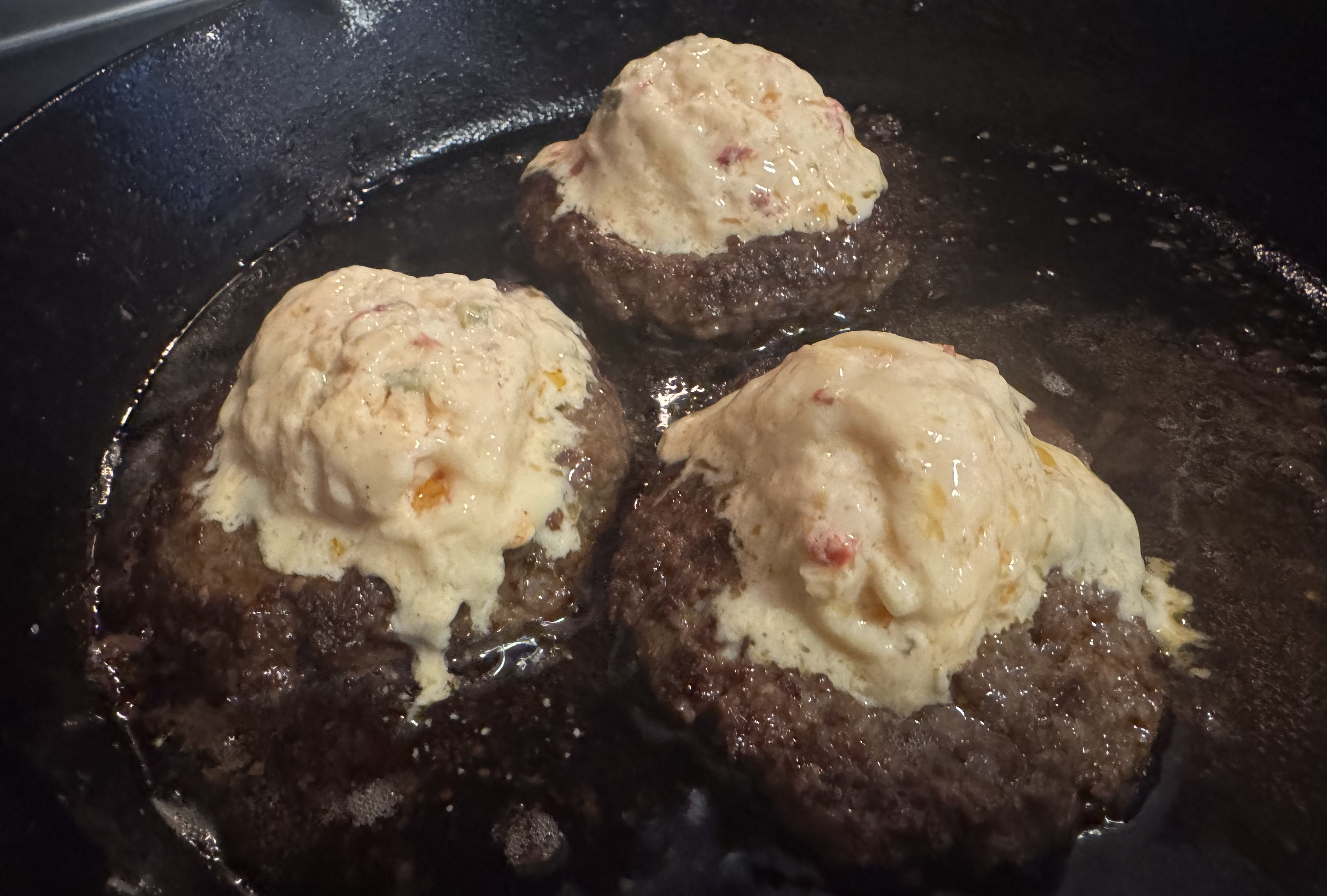 Also made up some pepper jack pimento cheeseburgers in the cast iron skillet.