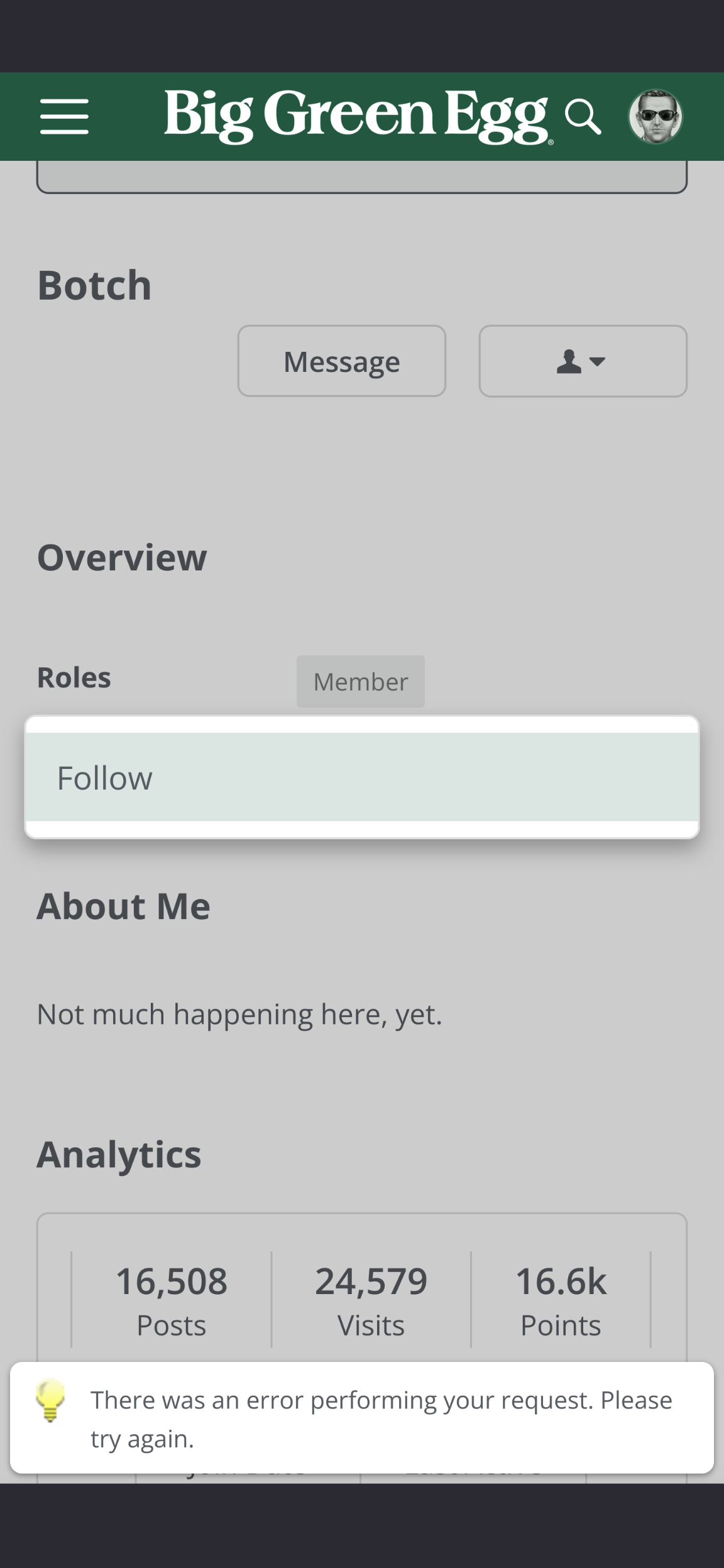 (to be honest, I don't think I've hit "Follow" for anyone else, so it's meaningless to me)@HannahGreeneEgg - Can @Botch profile be repaired so I can follow him? Can you also explain why badges were implemented?