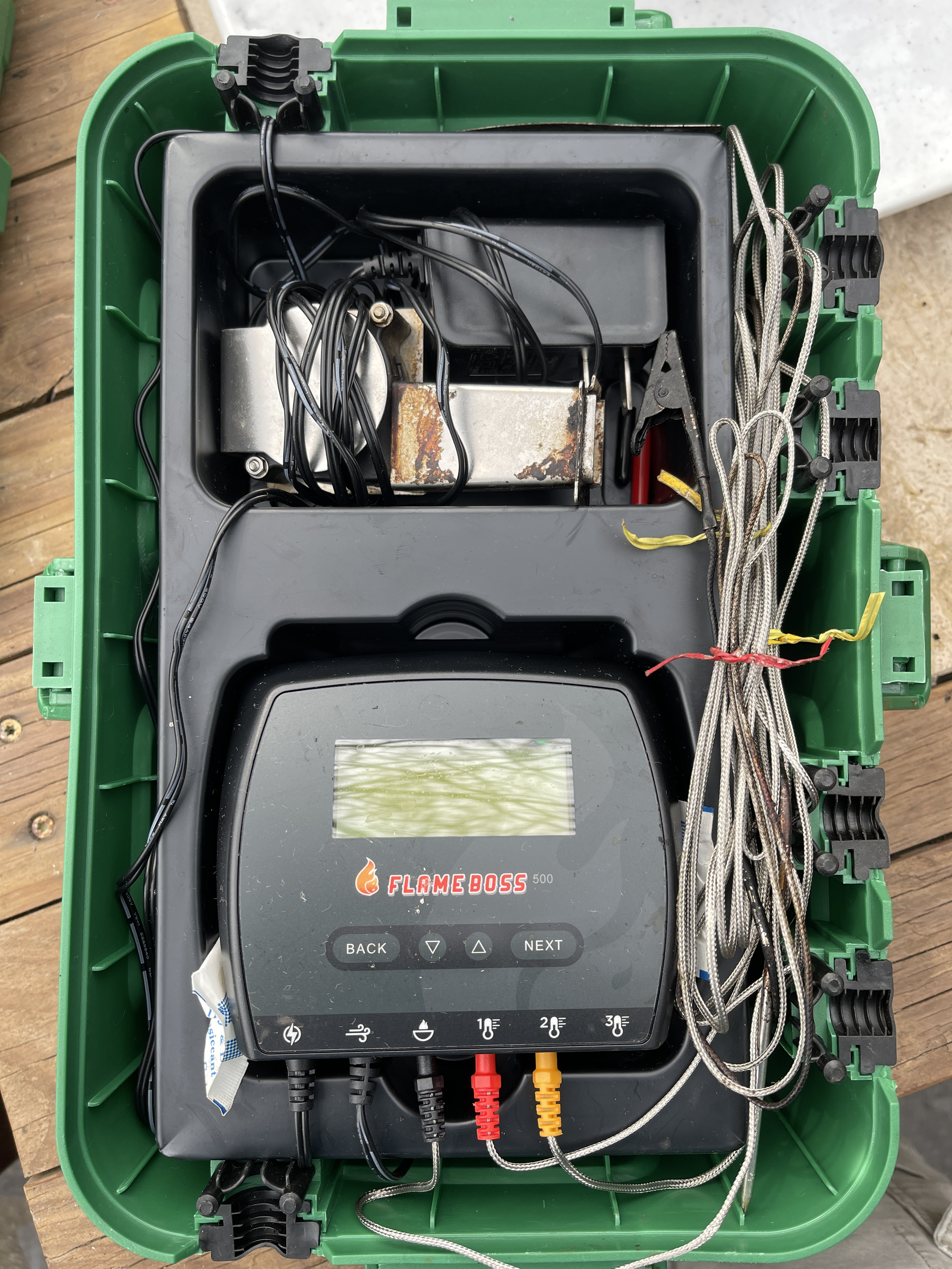 Nice thing about it is it is cheap, waterproof, self contained, durable, and I literally just drop the insert from the FlameBoss 500 from box to box. Super easy.