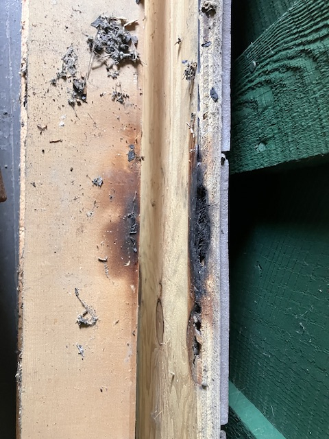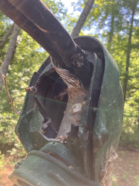 and in other news does anything strike you as suboptimal about the compromised hot wire inside the compromised (no whack a mole insulator holes) weatherhead. this pic is after removal