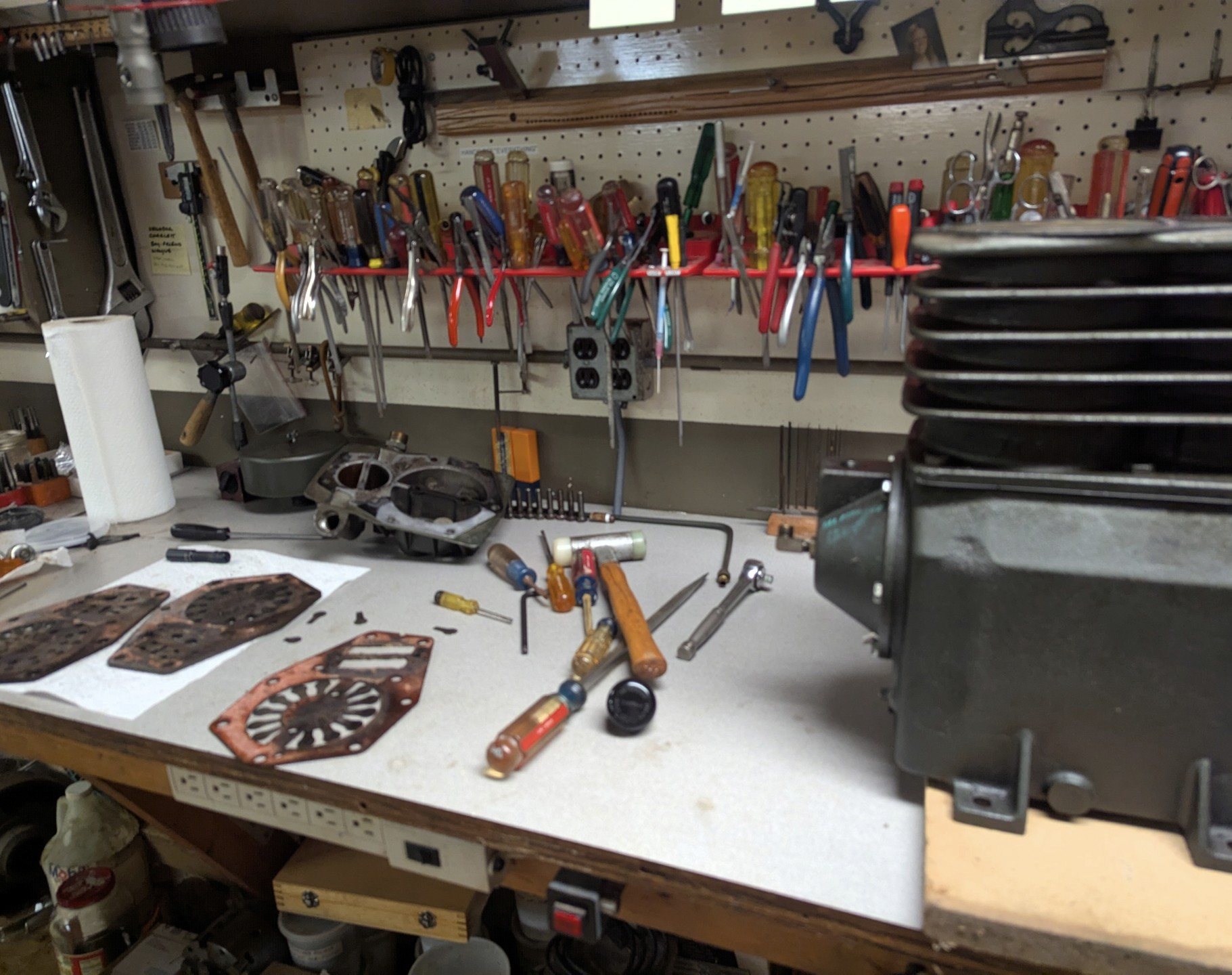 Going to be replacing the 80 gallon tank on my Dad's air compressor. Since we had the tank out of the closet in my Dad's shop we thought it might be a good time to go through the pump and replace gaskets and the valve plate.