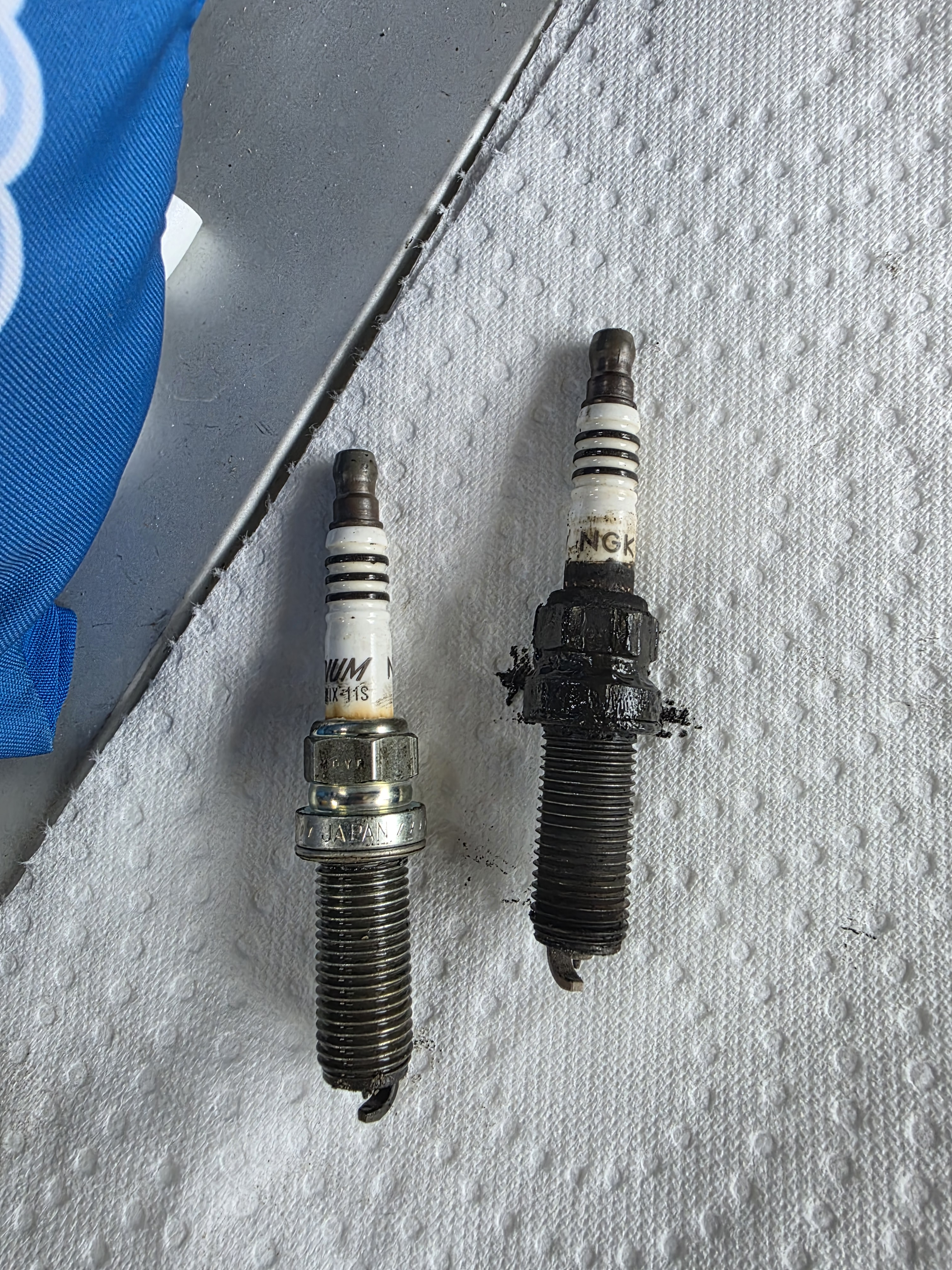 I used to pamper the van when new, changed out the spark plugs in year 2 or 3 and kept the old plugs in the bin for 'emergency'. After seeing your post I figured my OG plugs must be in better shape than what I had been using for 20+ years. Trust me, removing the six coil retaining bolts and the plugs without power tools (nod @GrateEggspectations) after all these years was interesting, working out many muscles that I didn't know about! These came out: