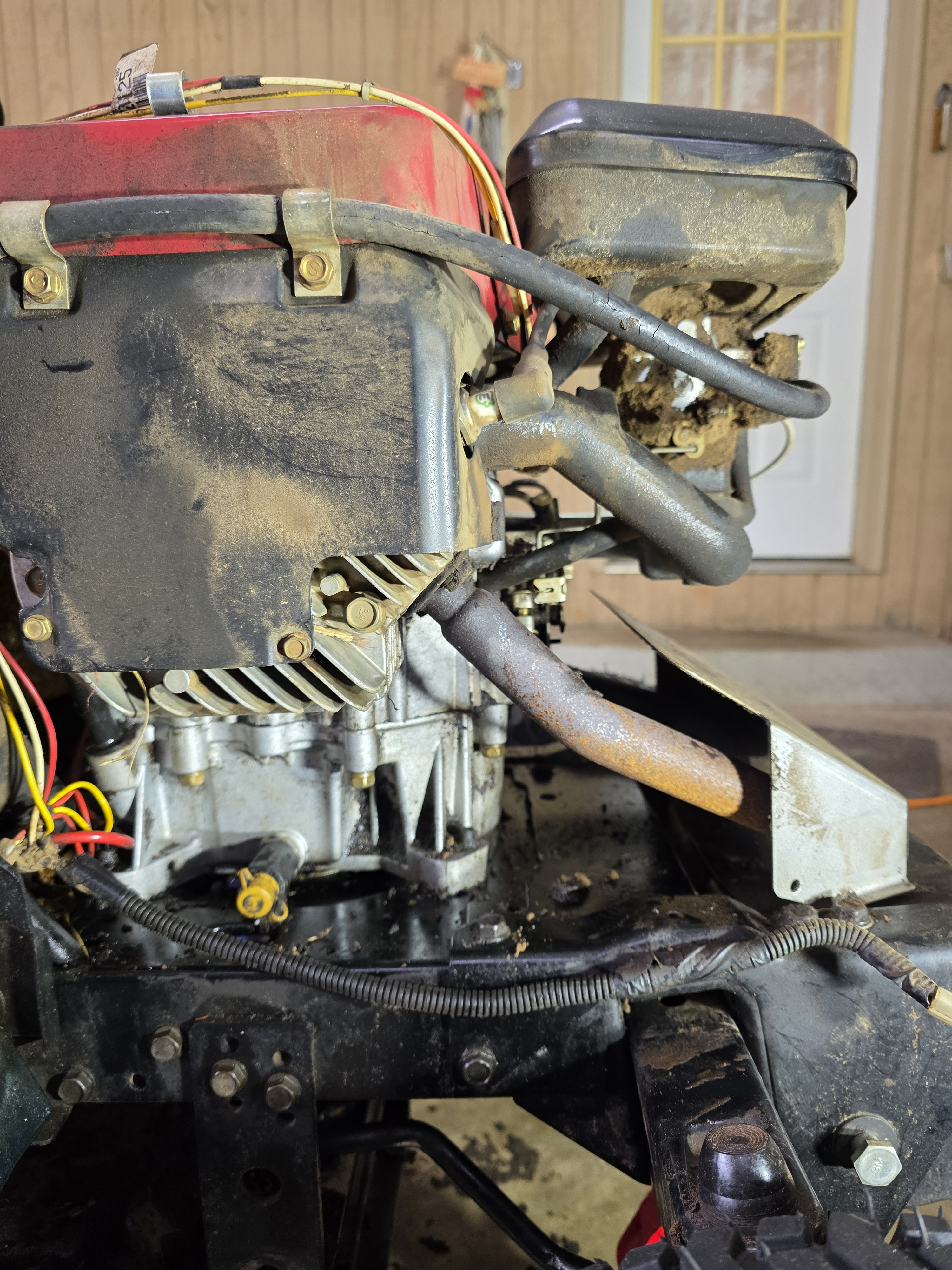 @alaskanassasin finally someone bit! I can't find anything on the motor or lawnmower. I'll watch several different YouTube videos to see which mix mine has. 35 years will do that. The manual I found has a part number for a oil filter in the drawings and bom, but never shows it. I have looked several times to find one hidden away somewhere but I think it just doesn't have one. I only have a picture of one side.