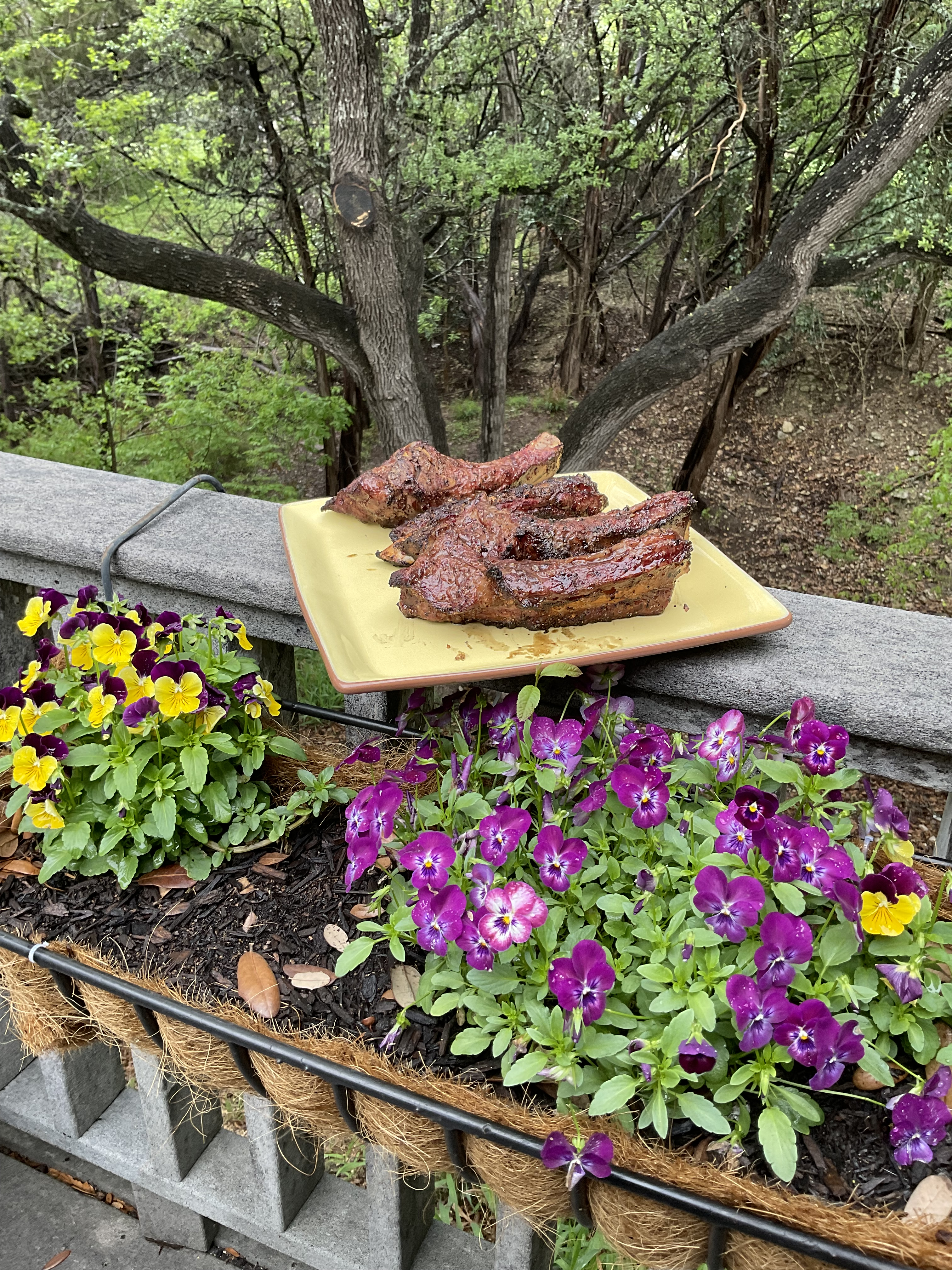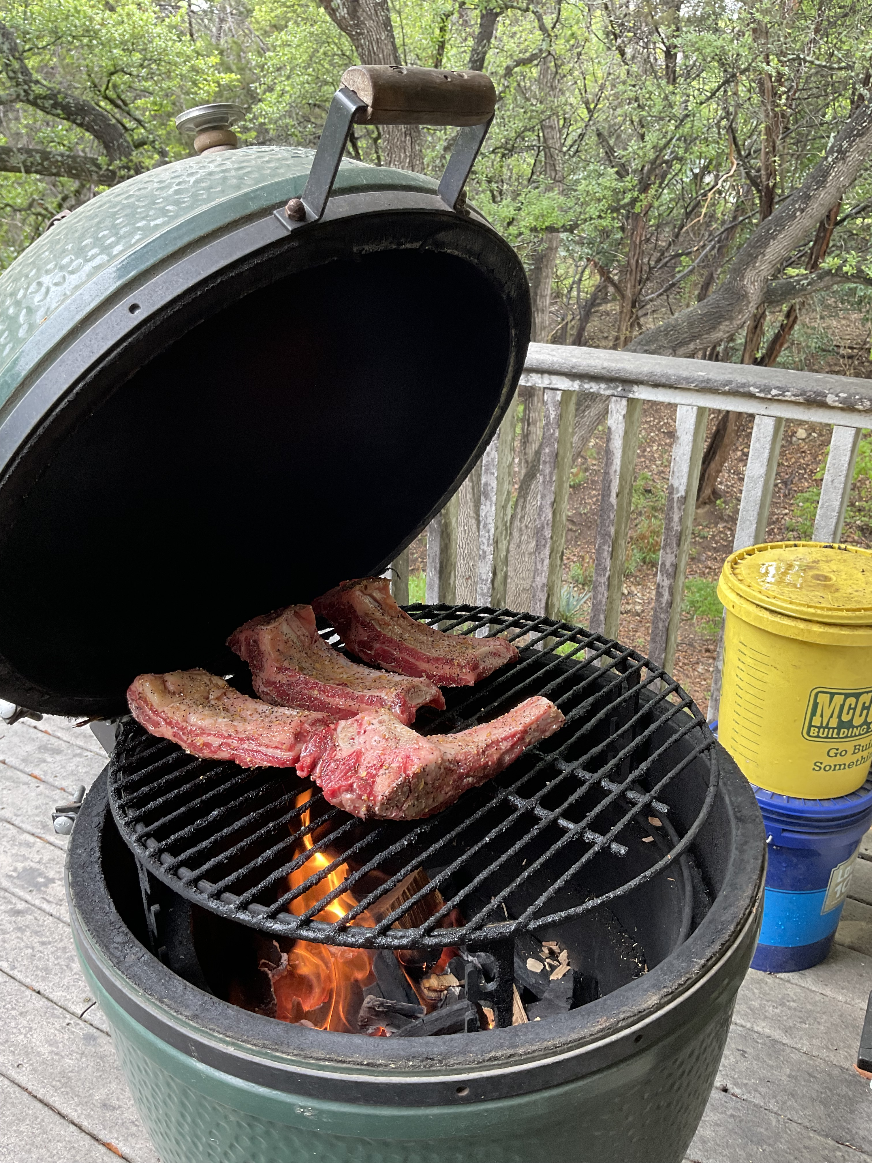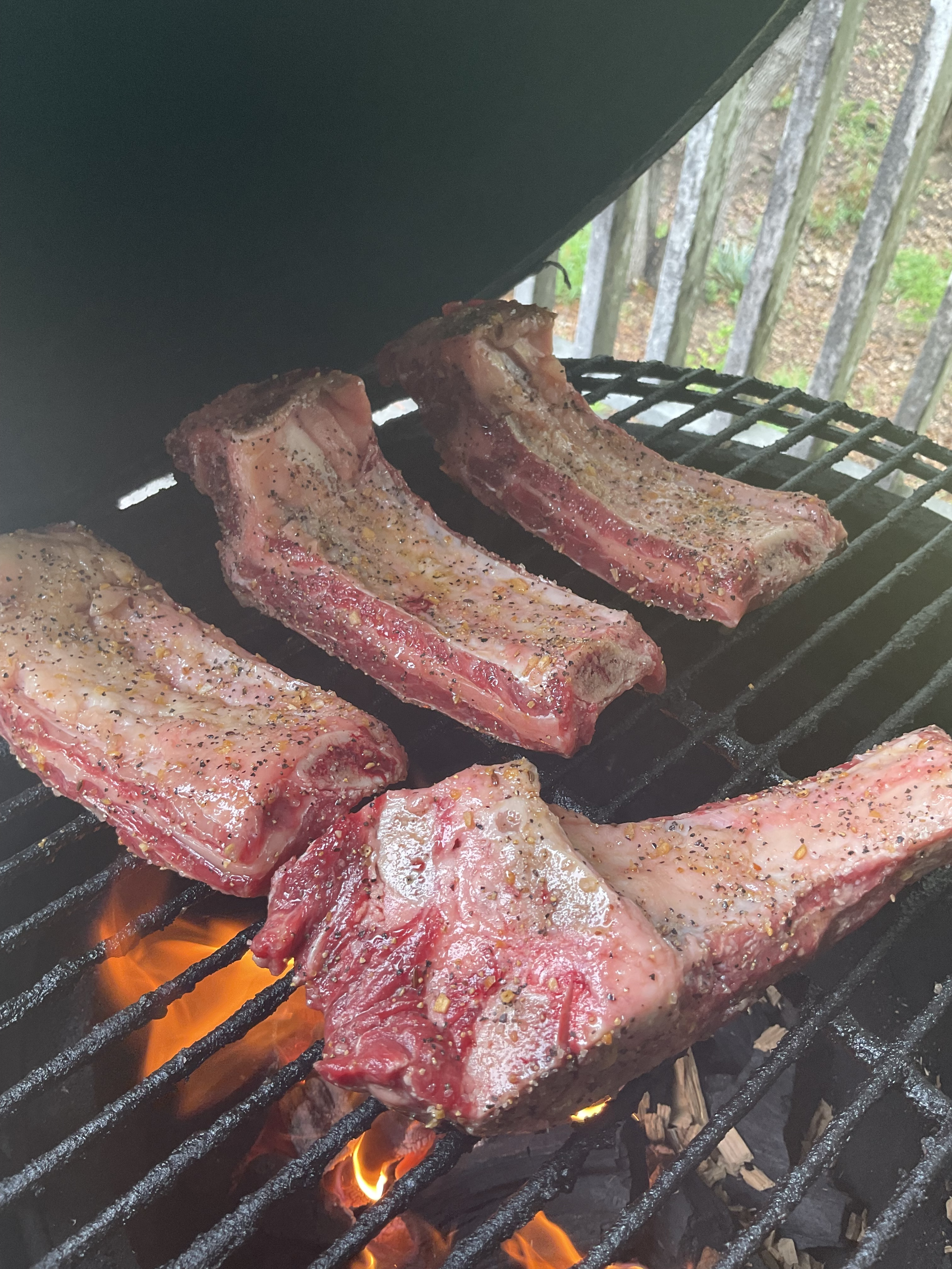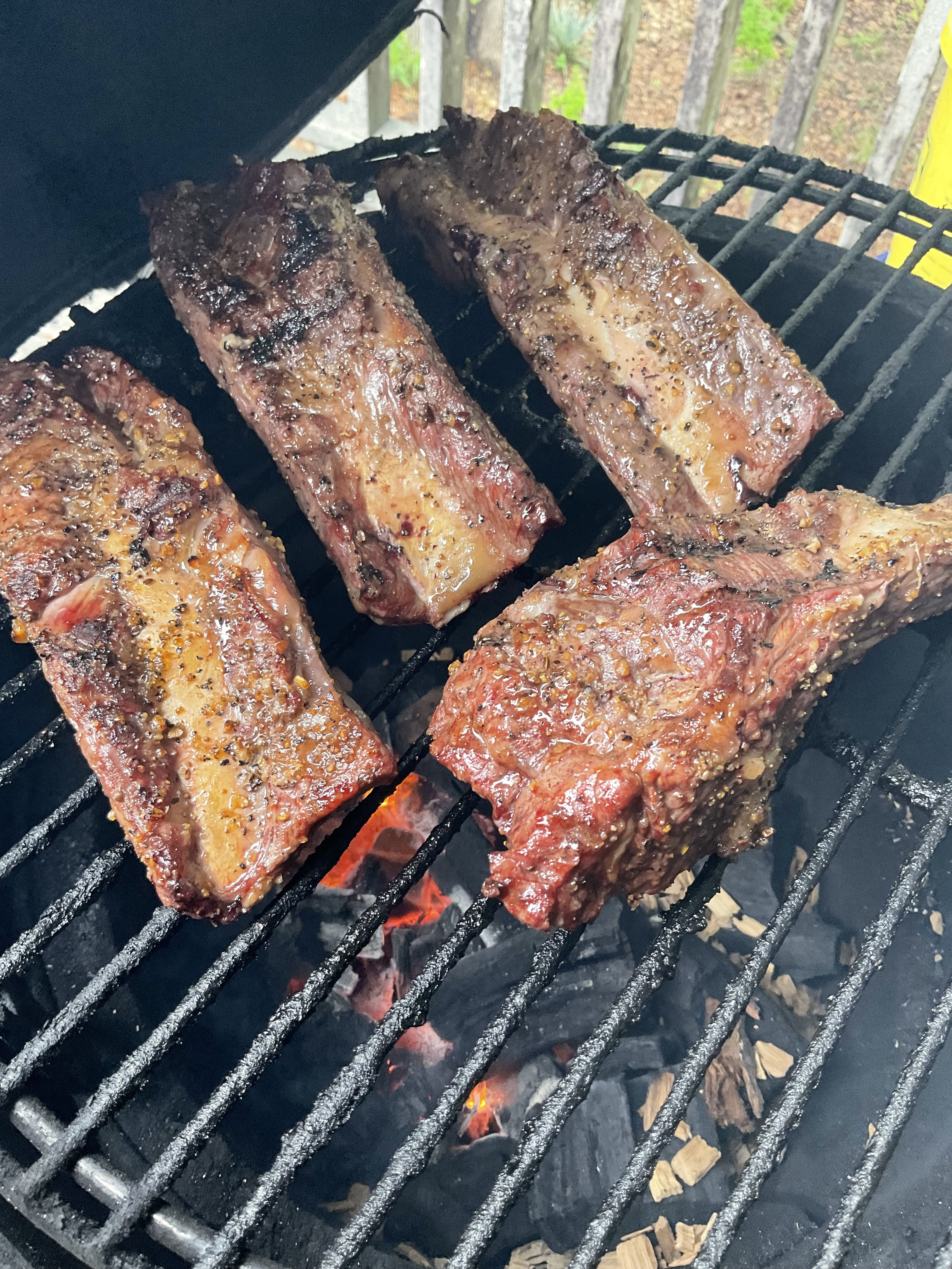 Costco beef ribs for lunch w/ Montreal seasoning and post oak wood