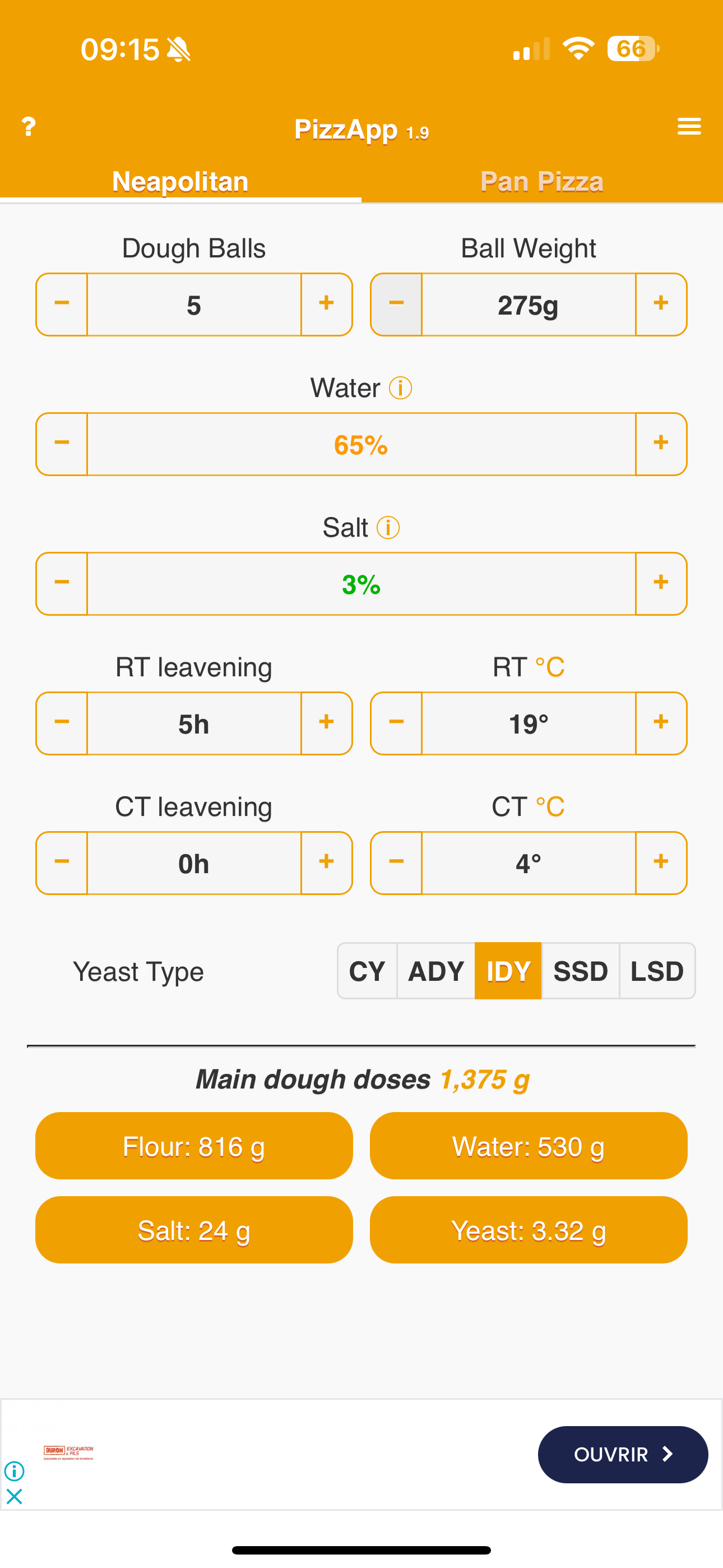 I use PizzApp+ to calculate my ratios/timing: https://apps.apple.com/ca/app/pizzapp/id1228158792