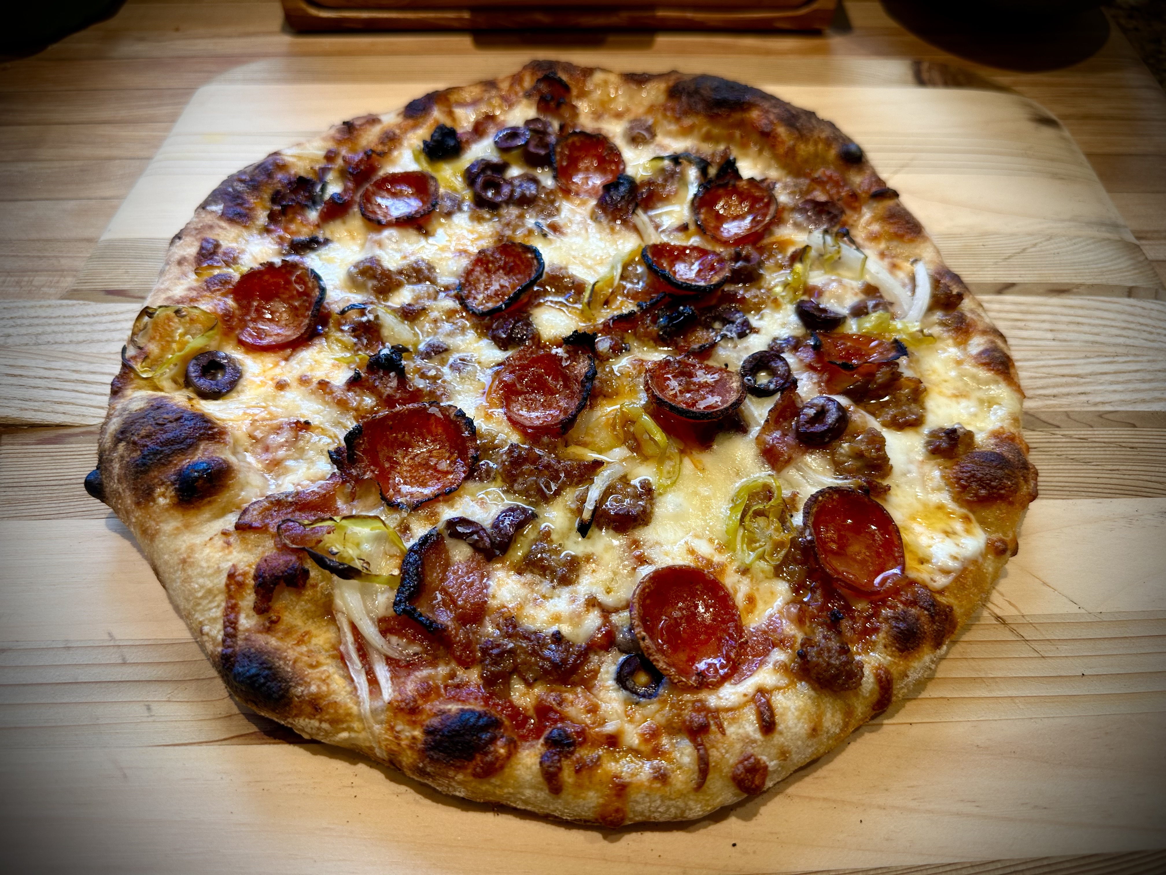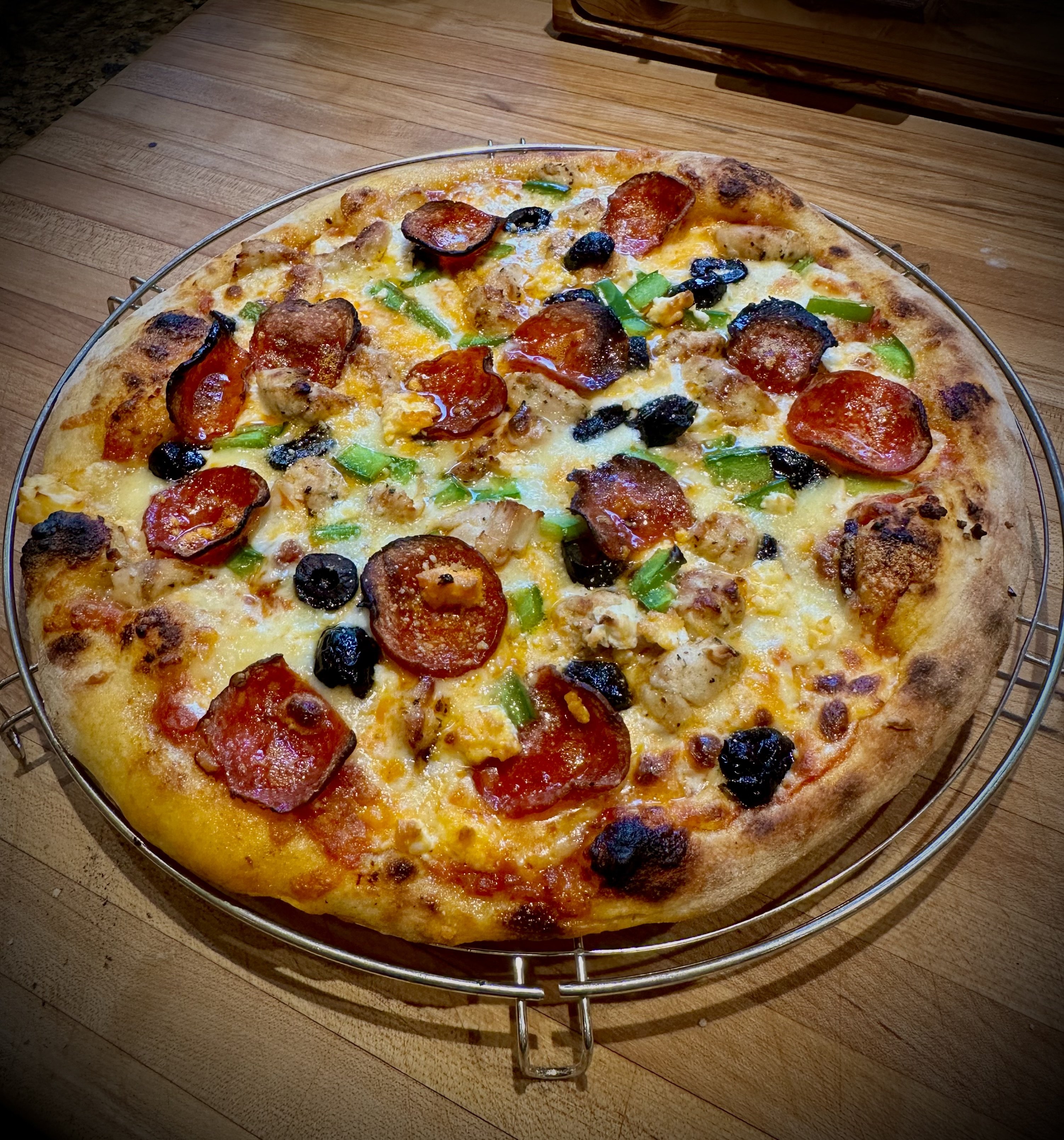 I guess not overly off topic, since people do cook pizzas on the egg, but I’ve found an actual pizza oven does a better job for me.  But to the point of my post - pizza dough!