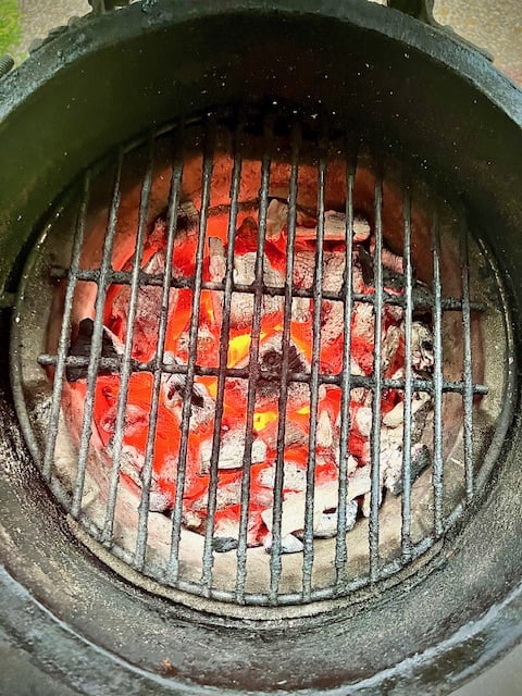 If you want a truly hot bed of lump for a high heat cook below is a photo followed by the method to achieve: (you may wonder why just a fire photo-it was a simple steak cook and the $$ shot was not worthy!):