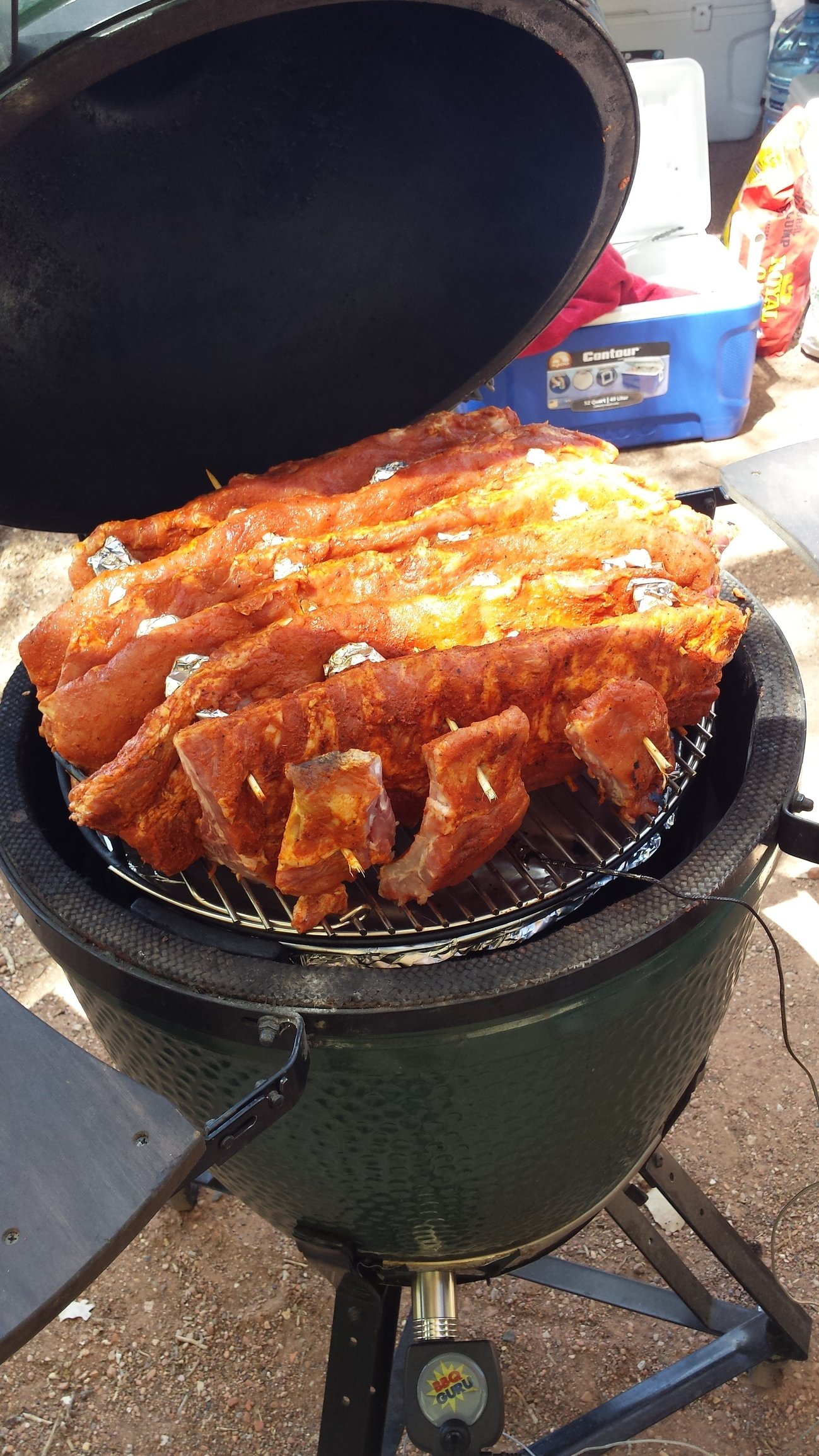 I’m looking at trying to cook 4 rack of ribs on my large at one time. Is it even possible? I usually do Malcom reeds method and wrap around a 2-2-1. I figure at best I can do 3 racks vertically and pick up a eggspander kit this weekend and cook the 4th up top? Any one ever do this?