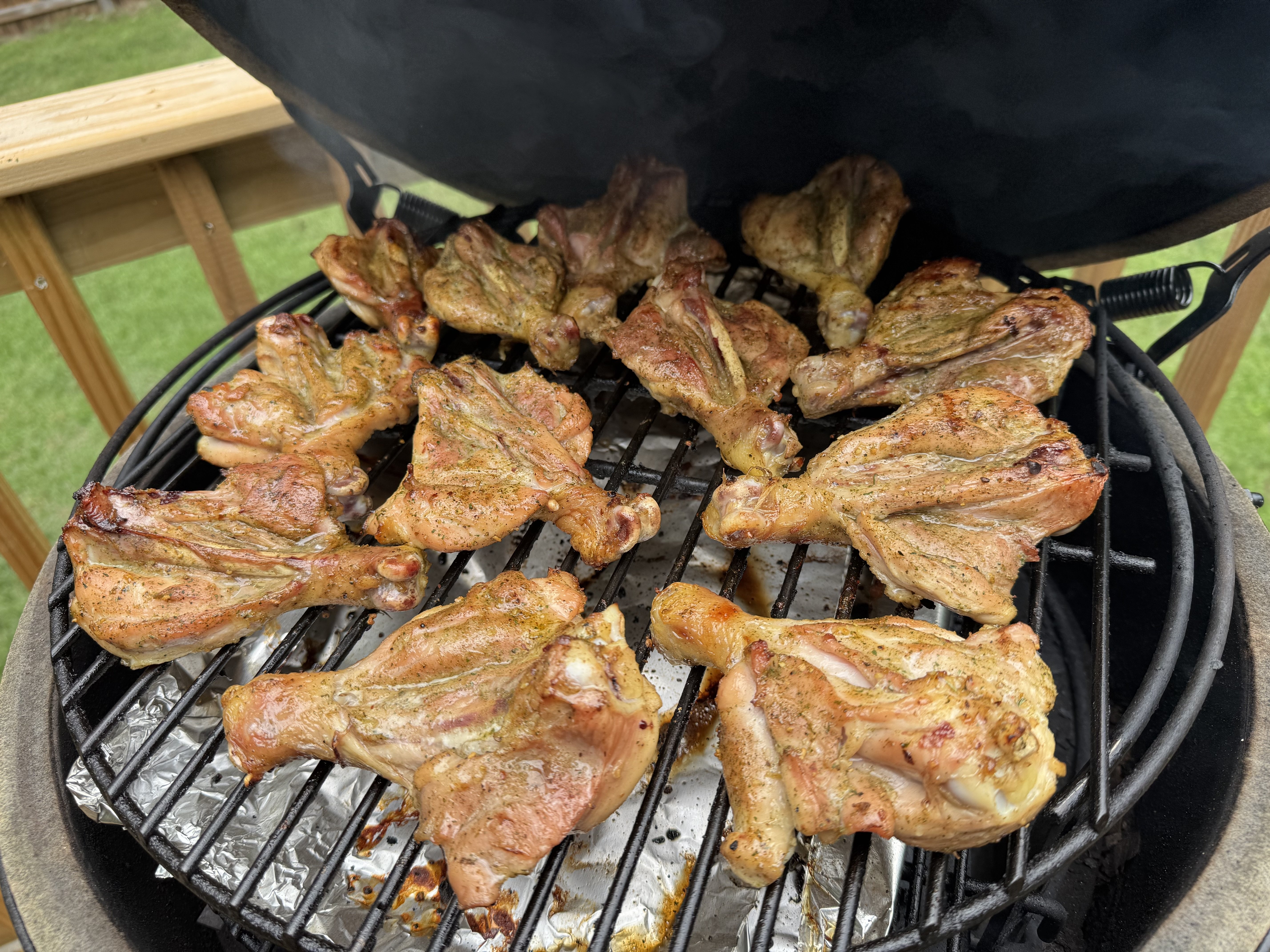First cook on it since replacing the bands — some simple butterflied chicken legs. Hit the spot.  :)