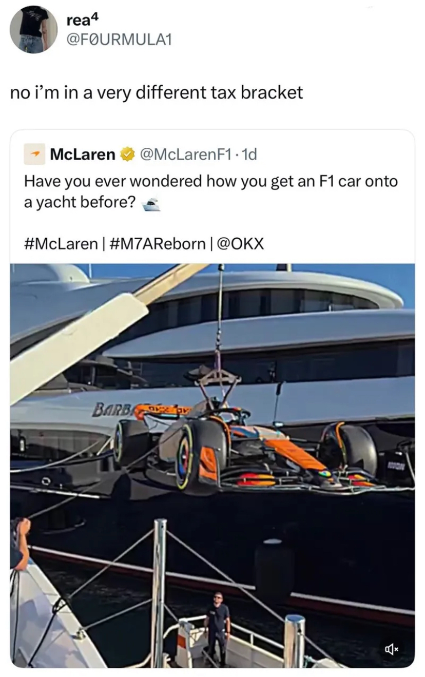 I thought high end thoroughbred horses were up there-silly me compared to the F1 deal.