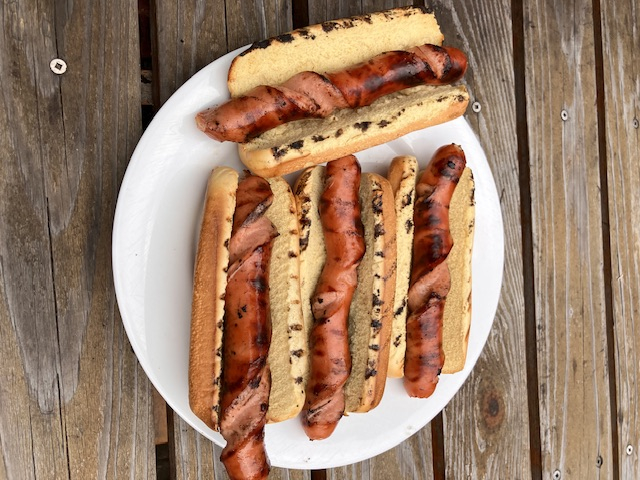 the brand of dogs are Sahlens from Buffalo, NY who are the mainstay provider for Ted’s Hot Dogs in Buffalo. Also the recently closed JJ Red Hots around Charlotte and the long-missed Barker’s Red Hots in Atlanta. these restaurants cook(ed) over lump charcoal.
