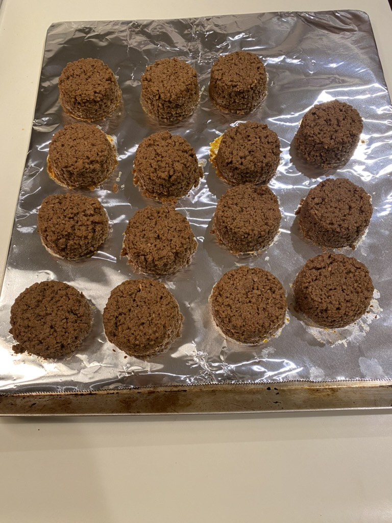 I then package it by compressing the sauce into a ¼ cup measuring cup and slam the resulting “puck” onto a foil covered cookie sheet and then freeze. After frozen I wrap them individually in Saran Wrap. 1 puck makes 2 terrific chili dogs.