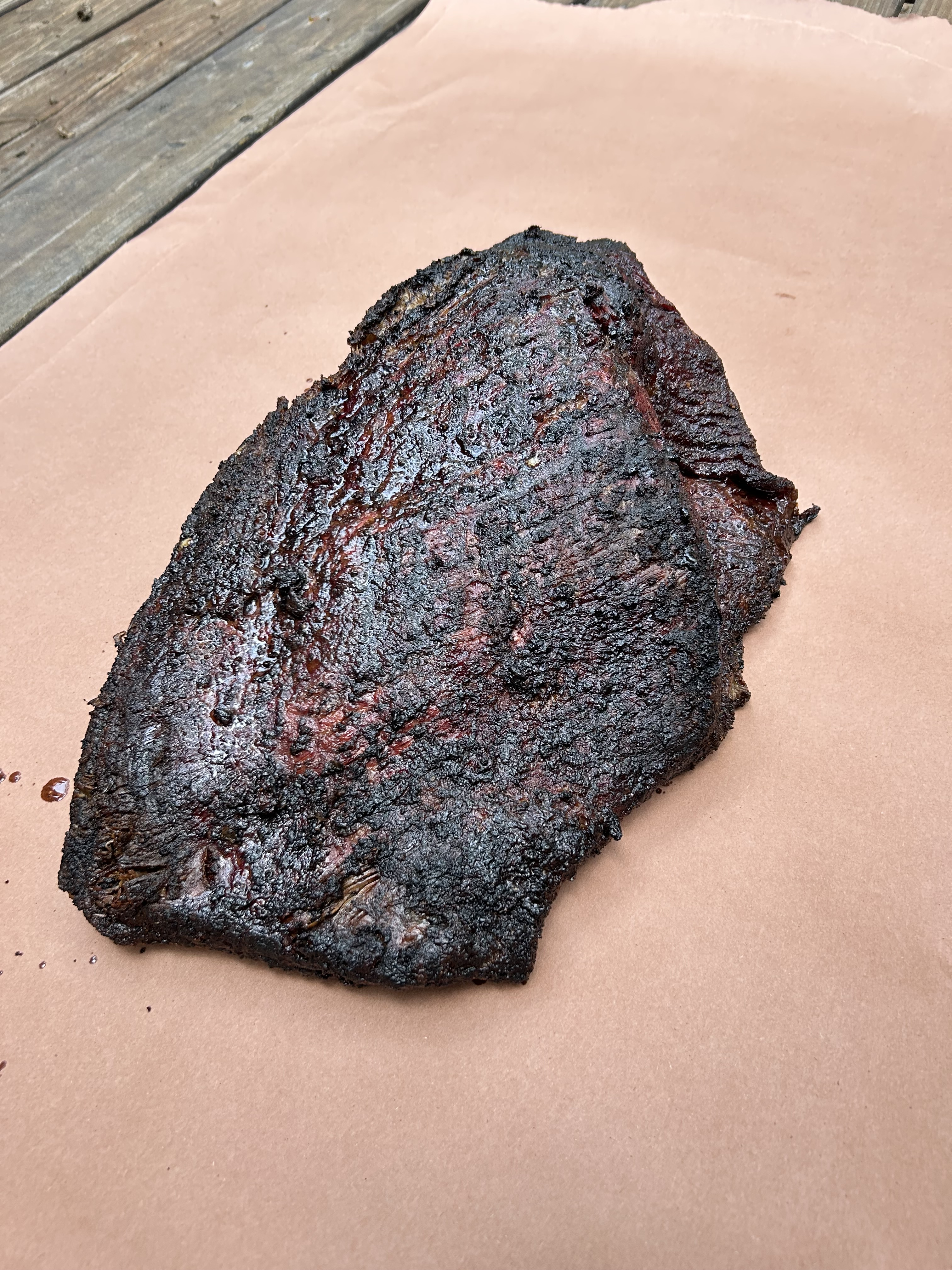Brisket ready for wrapping in butcher paper.XXL BGE, Karebecue, Klose BYC, Chargiller Akorn Kamado, Weber Smokey Mountain, Grand Turbo gasser, Weber Smoky Joe, and the wheelbarrow that my grandfather used to cook steaks from his cattle