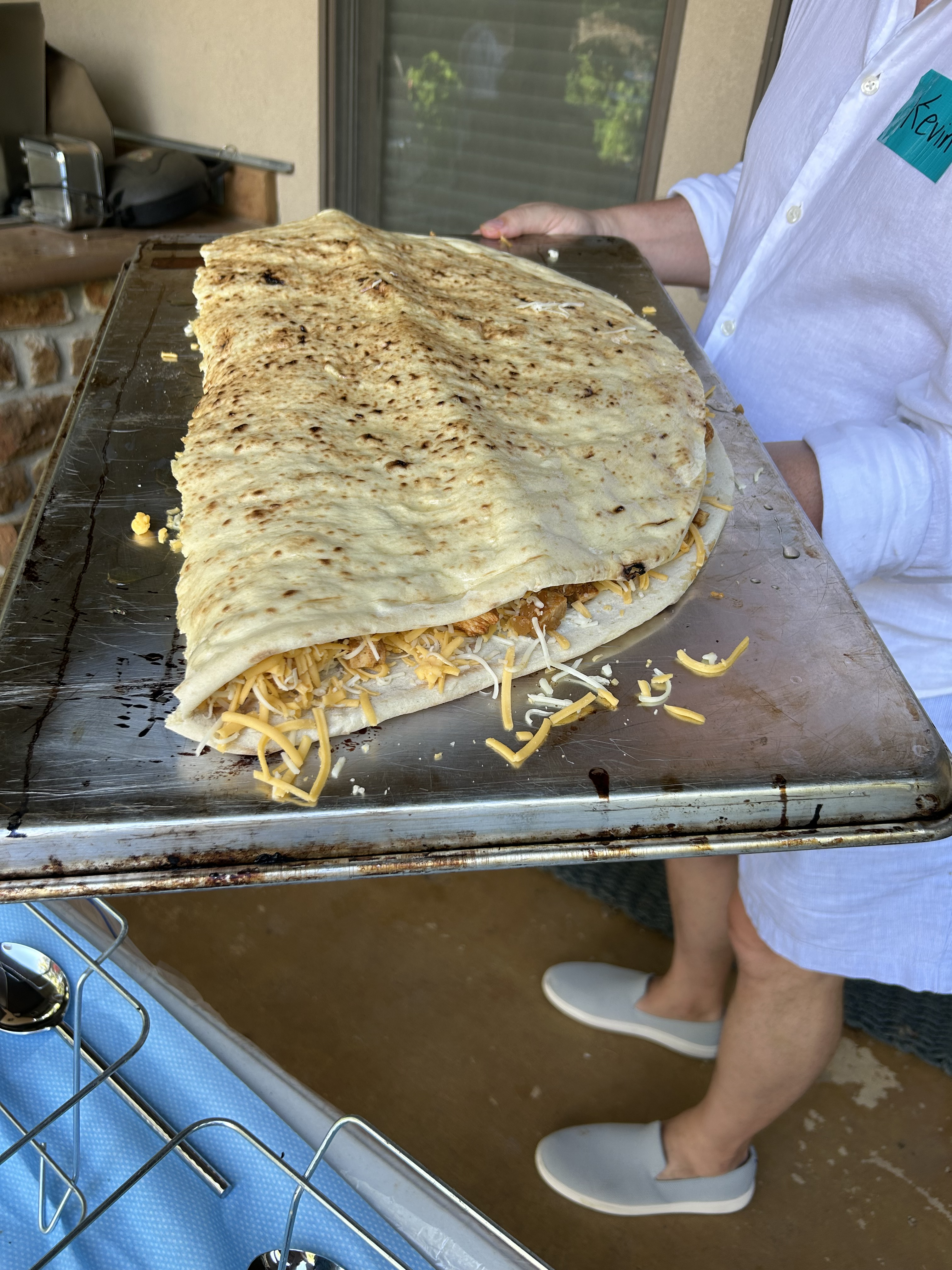 Giant marinated chicken, caramelized onion, Gouda, quesadilla - made on a naan.