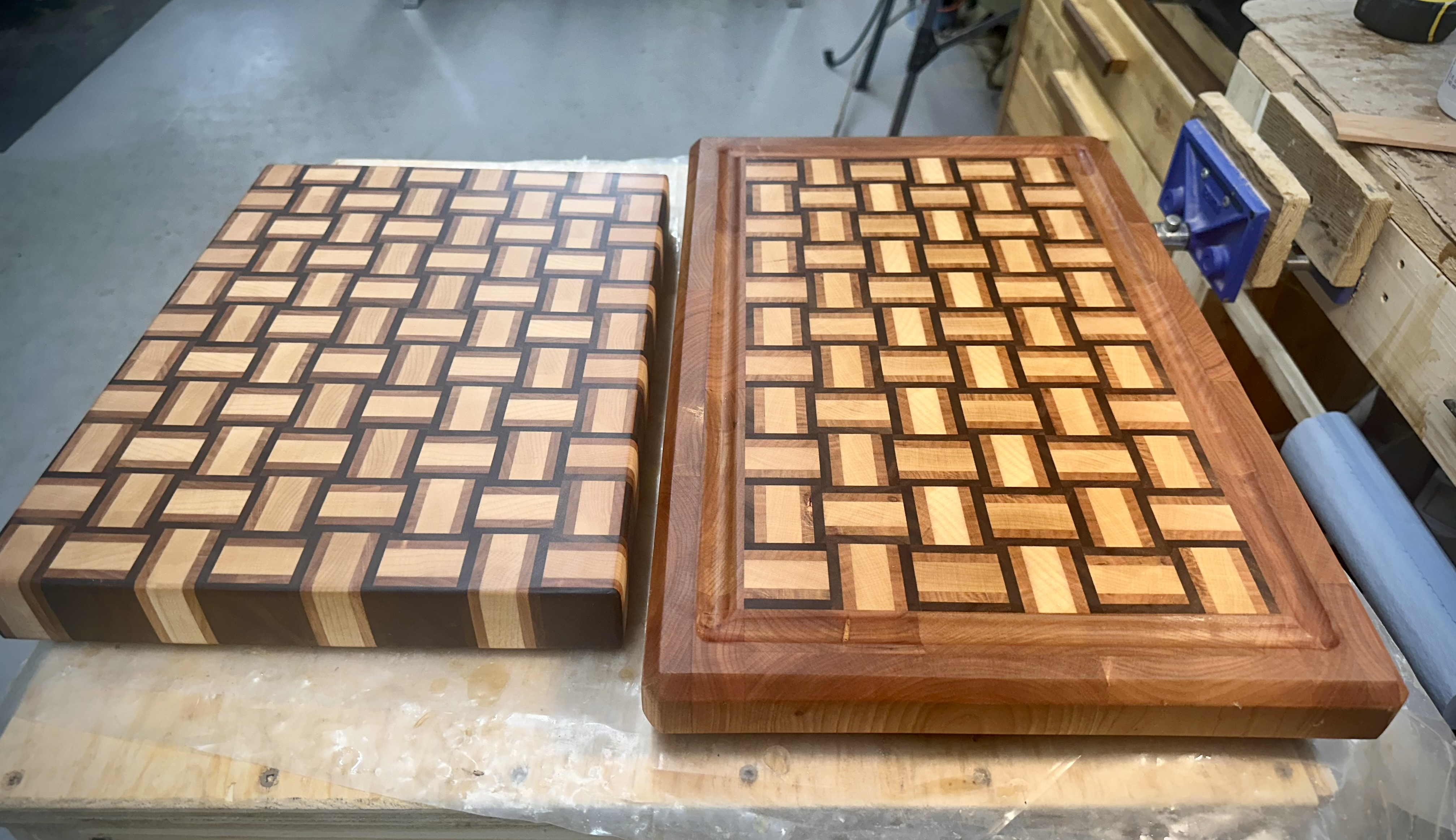 For the cook, it was simple. I put a rub on it and put it on a rib rack at around 400.  I had a pc of foil under it to keep it from burning and cooked to about 140, sauce at the end . FYI, the cutting board is my latest little project