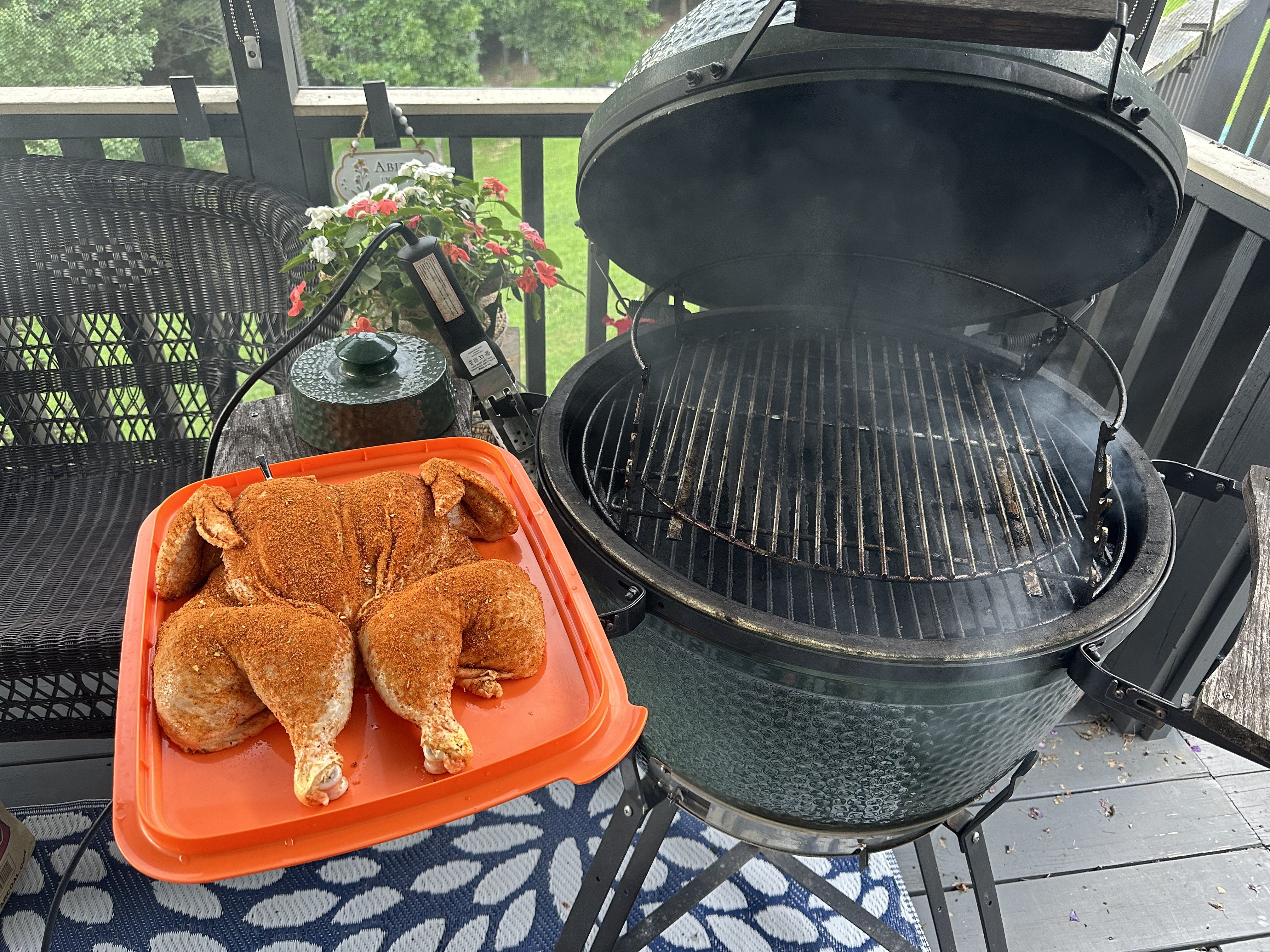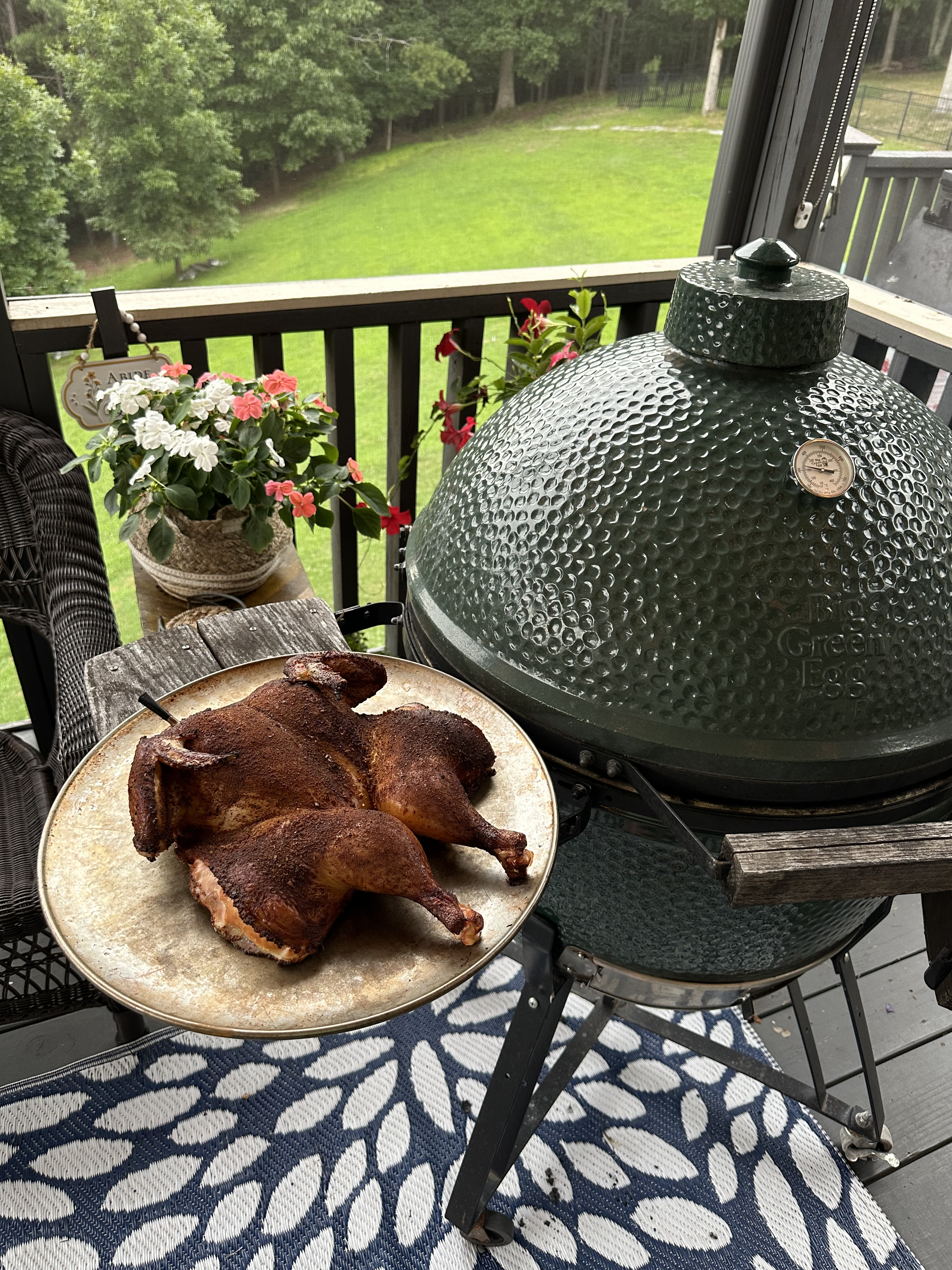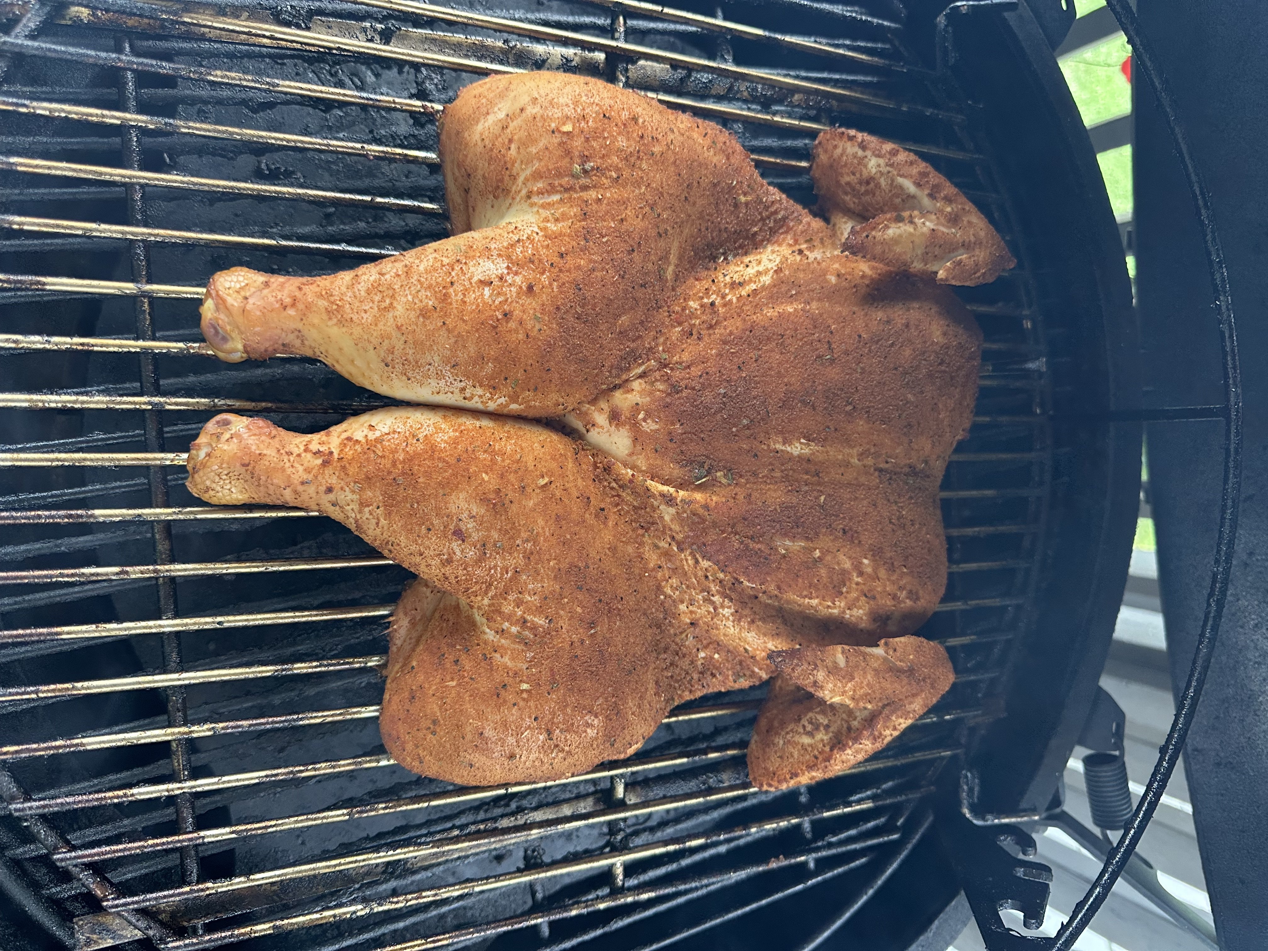 Had one smoking spatchcock’d while we did some house work this afternoon.