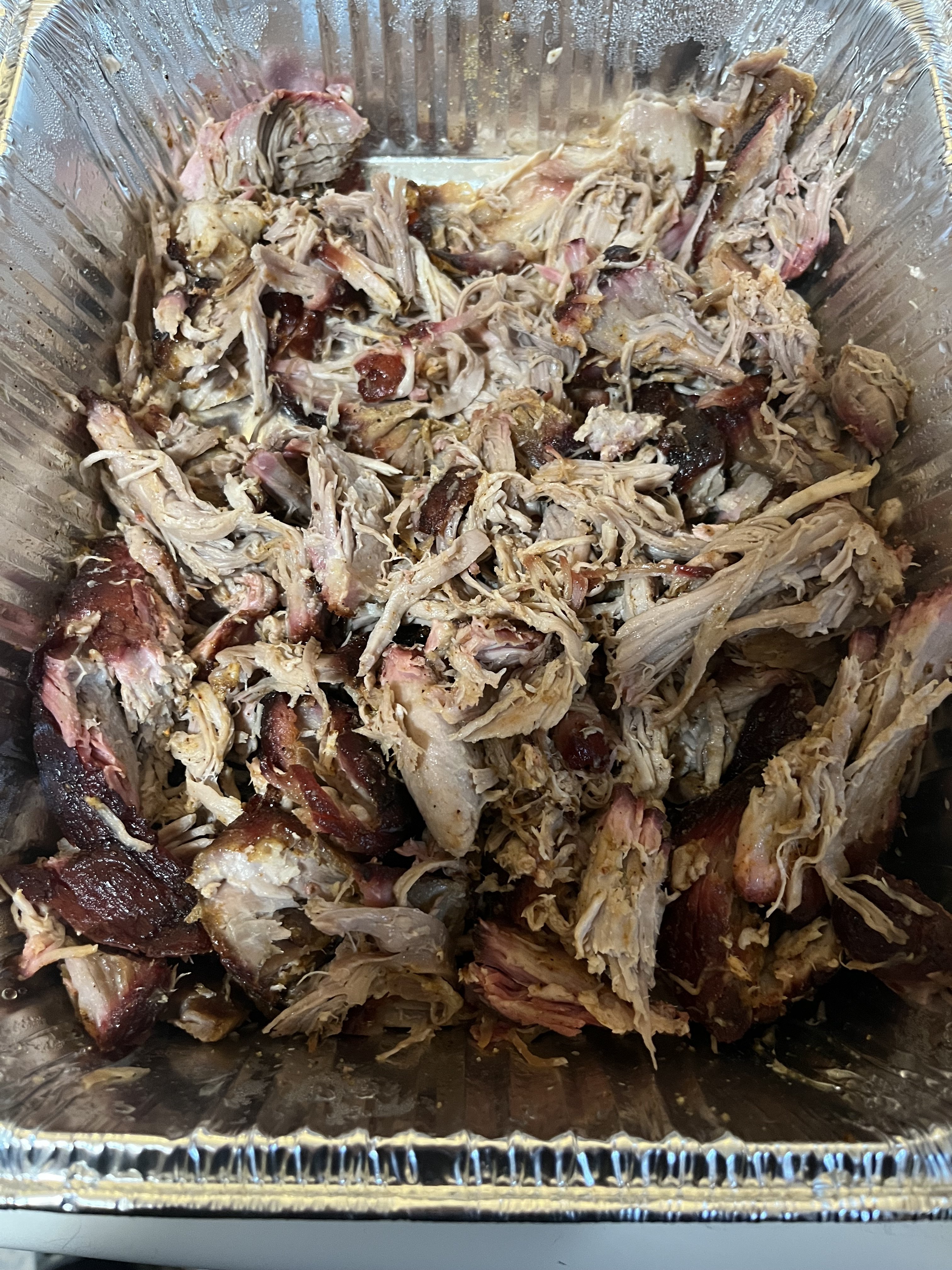 Good job! BTW we too did not do well eating any reheated frozen pulled pork, until I learned to use Coca-Cola as a warming medium in a pot. That made a world of difference! No - it does not take on a sickening sweet taste! But be sure to use the real Coke not any of that diet Coke and certainly NEVER pepsi! I understand some folks in the South prefer RC cola. I have even had some catering jobs where I egged 6 to 8 butts over a few days, pulled them and then warmed the meat using the Coco-Cola trick. BTW what really works best is just smile when you get the accolades, but NEVER tell them your trick as for some reason people get a strange idea since they don't understand the magic that Coca-Cola performed!