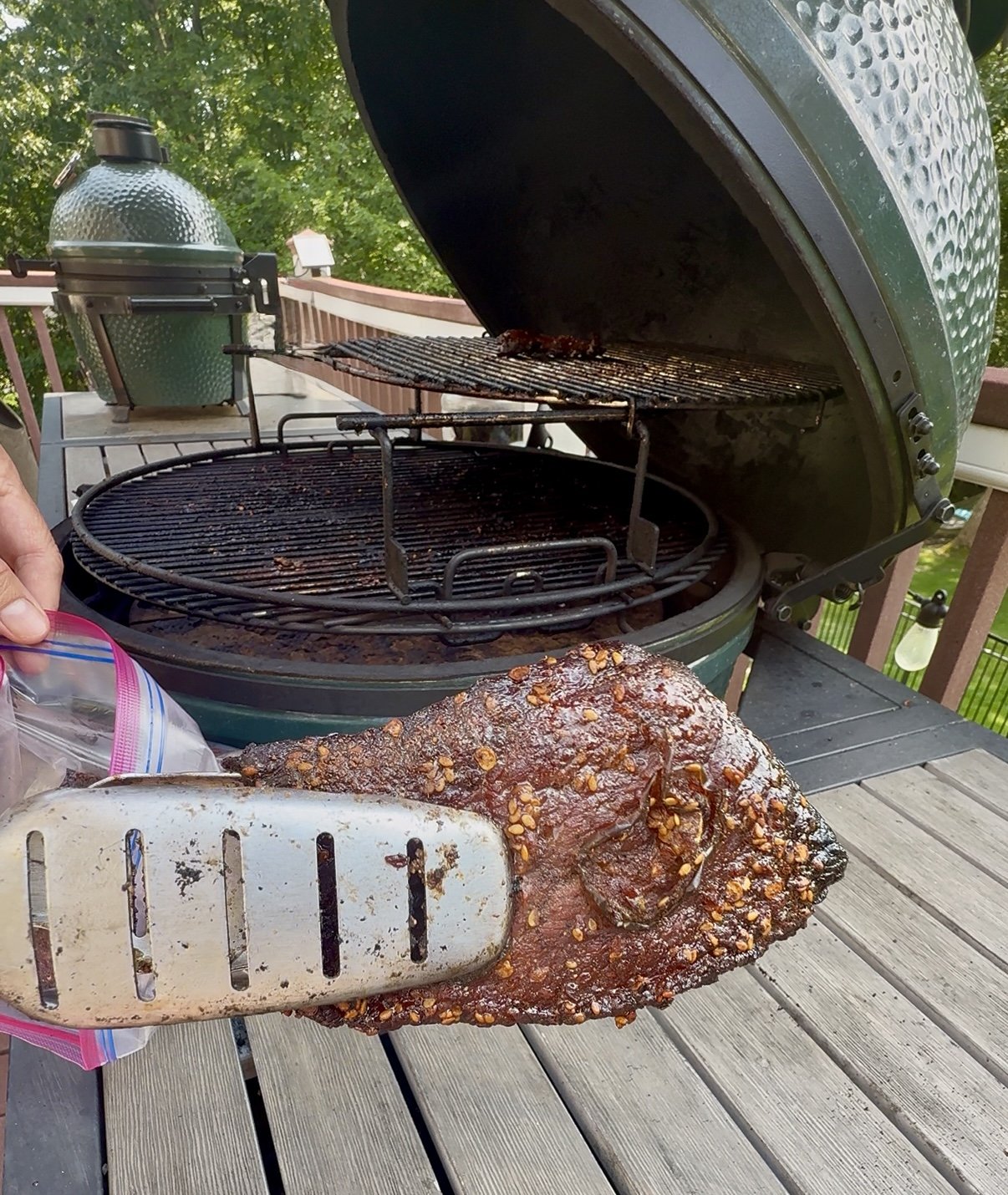 Was a lot to fit on the large with two tiered grate, so had to both fold and crowd the meat, but it all worked out Grate.