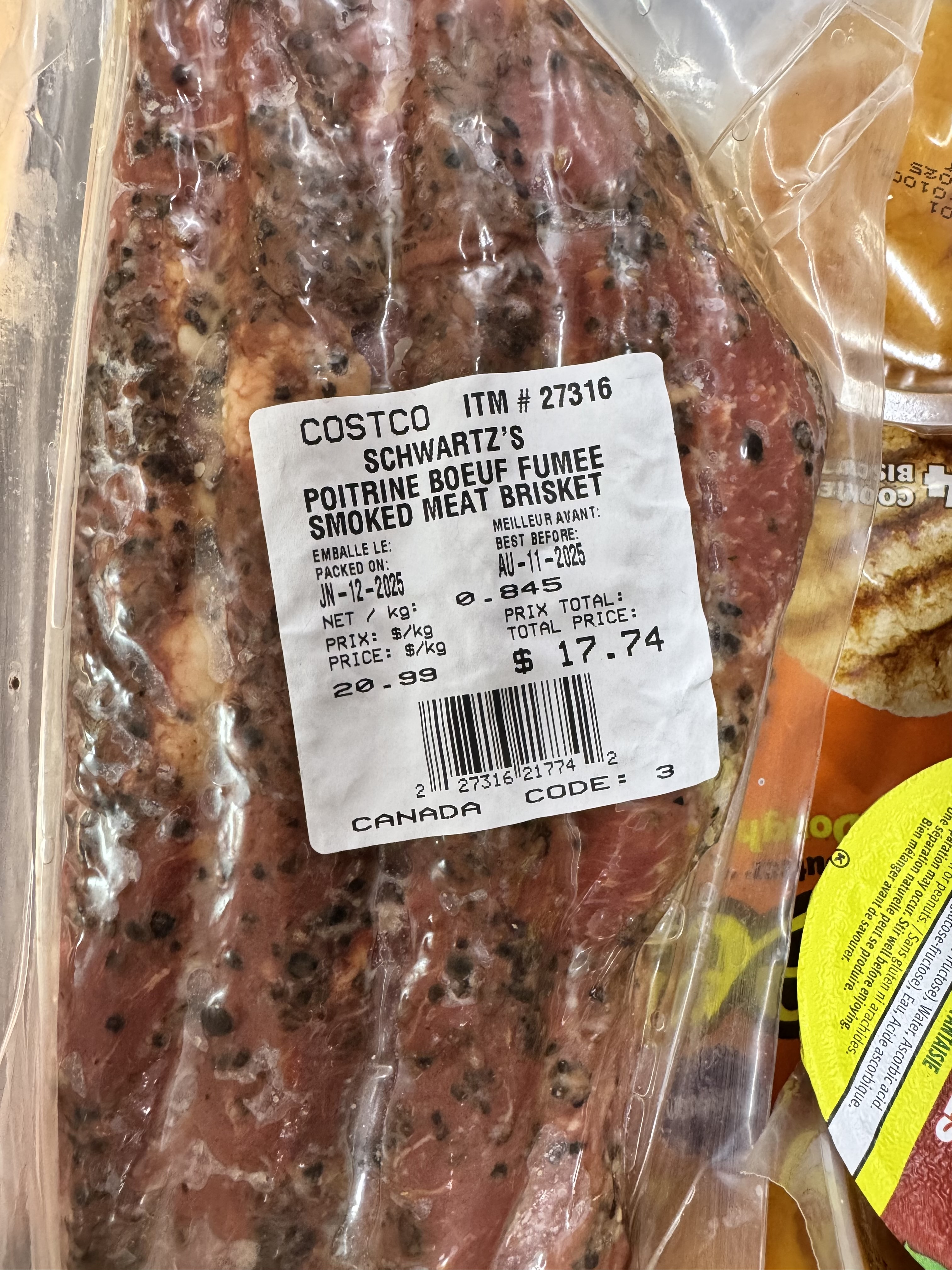 Costco and supermarket prices are reasonable and more aligned with raw brisket prices (about 1/3).