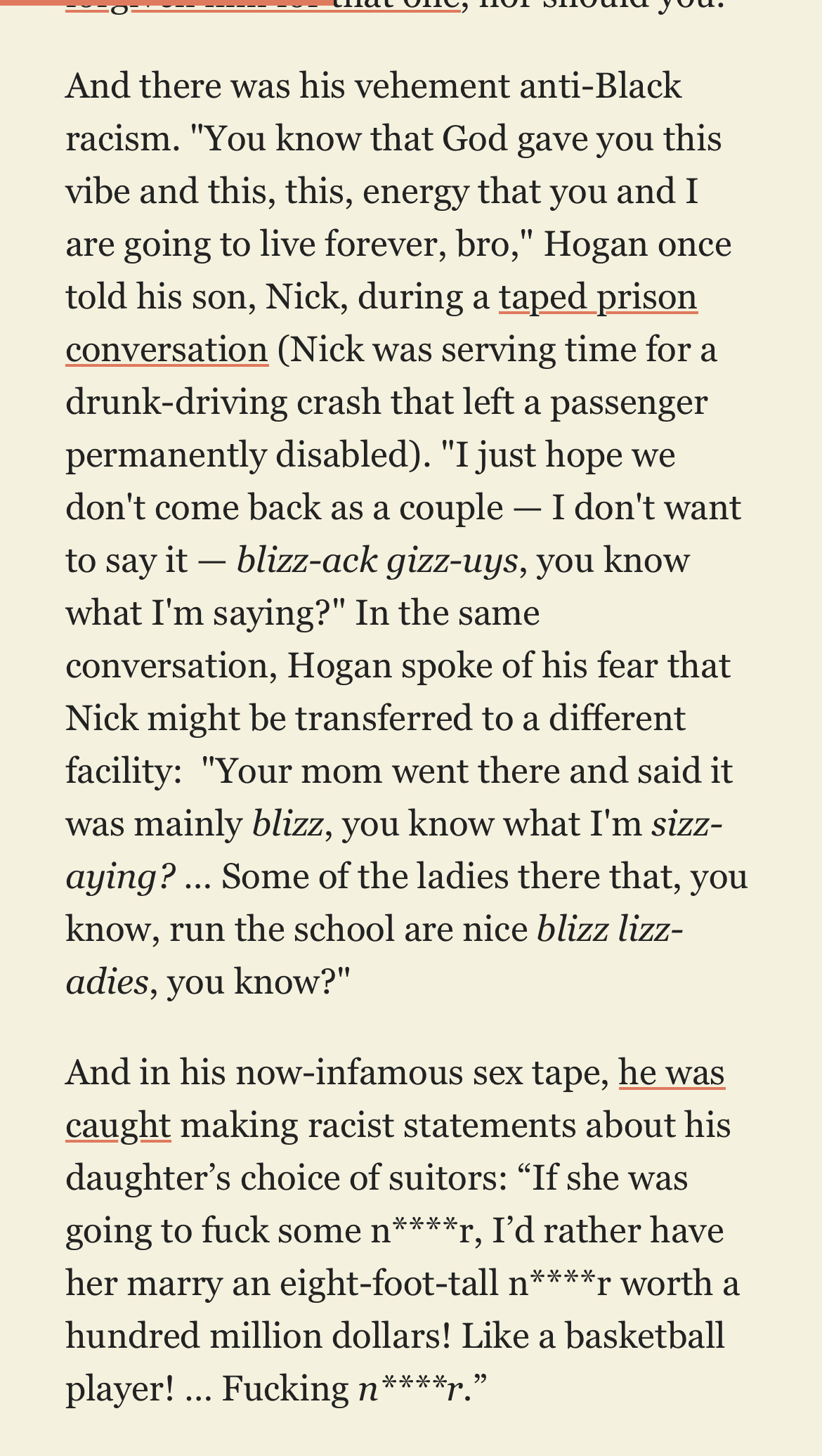 Well, and the racism.