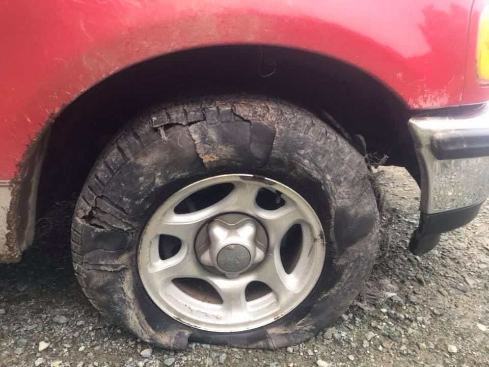 • Lesse if I can get this to post - I just found the pic of the f150 tire that blew on the highway…