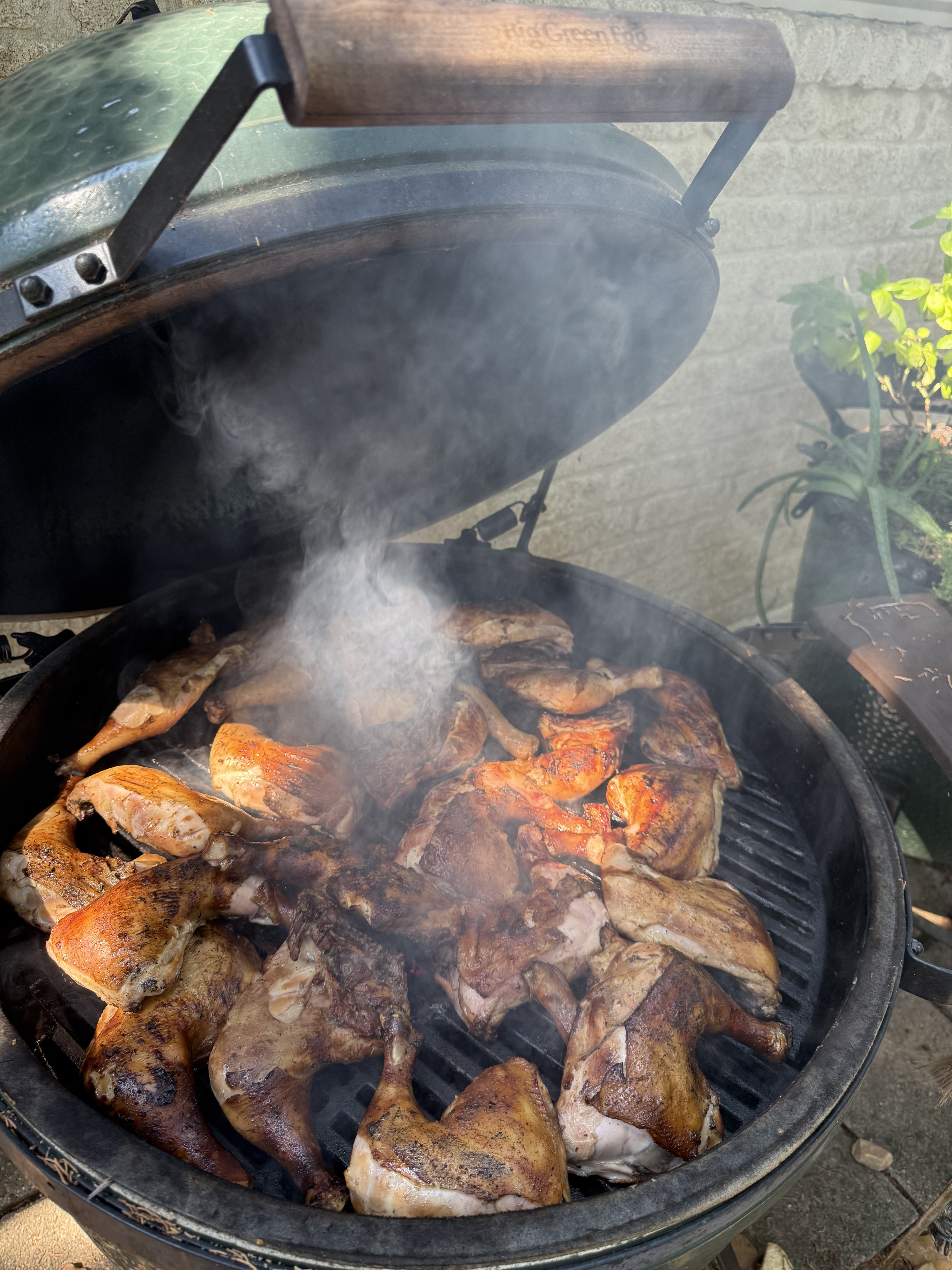 Nice, bet those will make an awesome chicken salad.Large Egg with adjustable rig, Kick Ash Basket, Minimax and various Weber's.