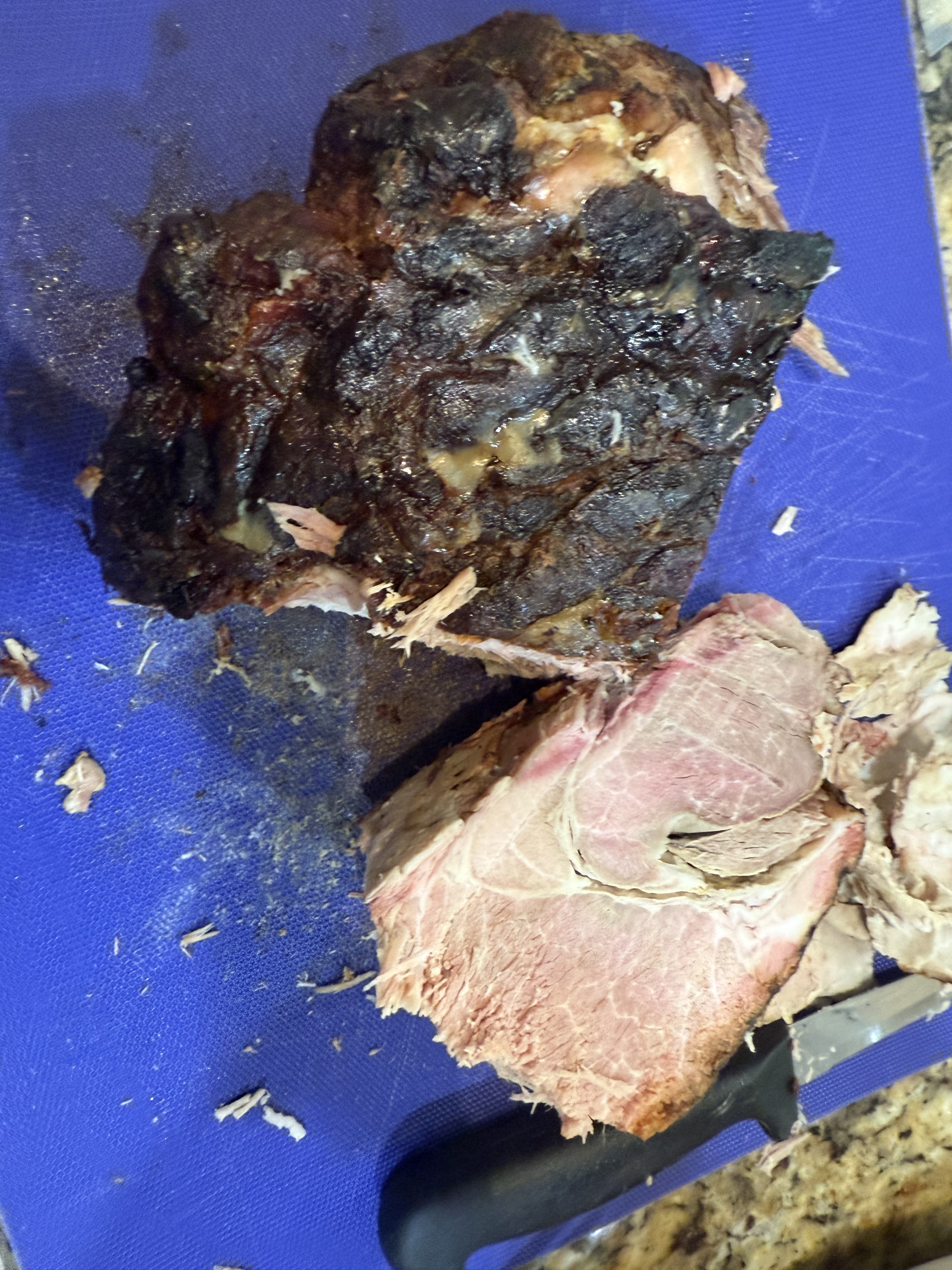Did I interpret correctly that you pulled the pork shoulder just before tossing in the crock pot?