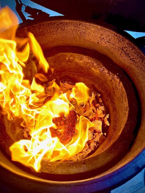 @fishlessman that's a really interesting approach, letting the fire warm the stone to cook and then tipping onto the coals.