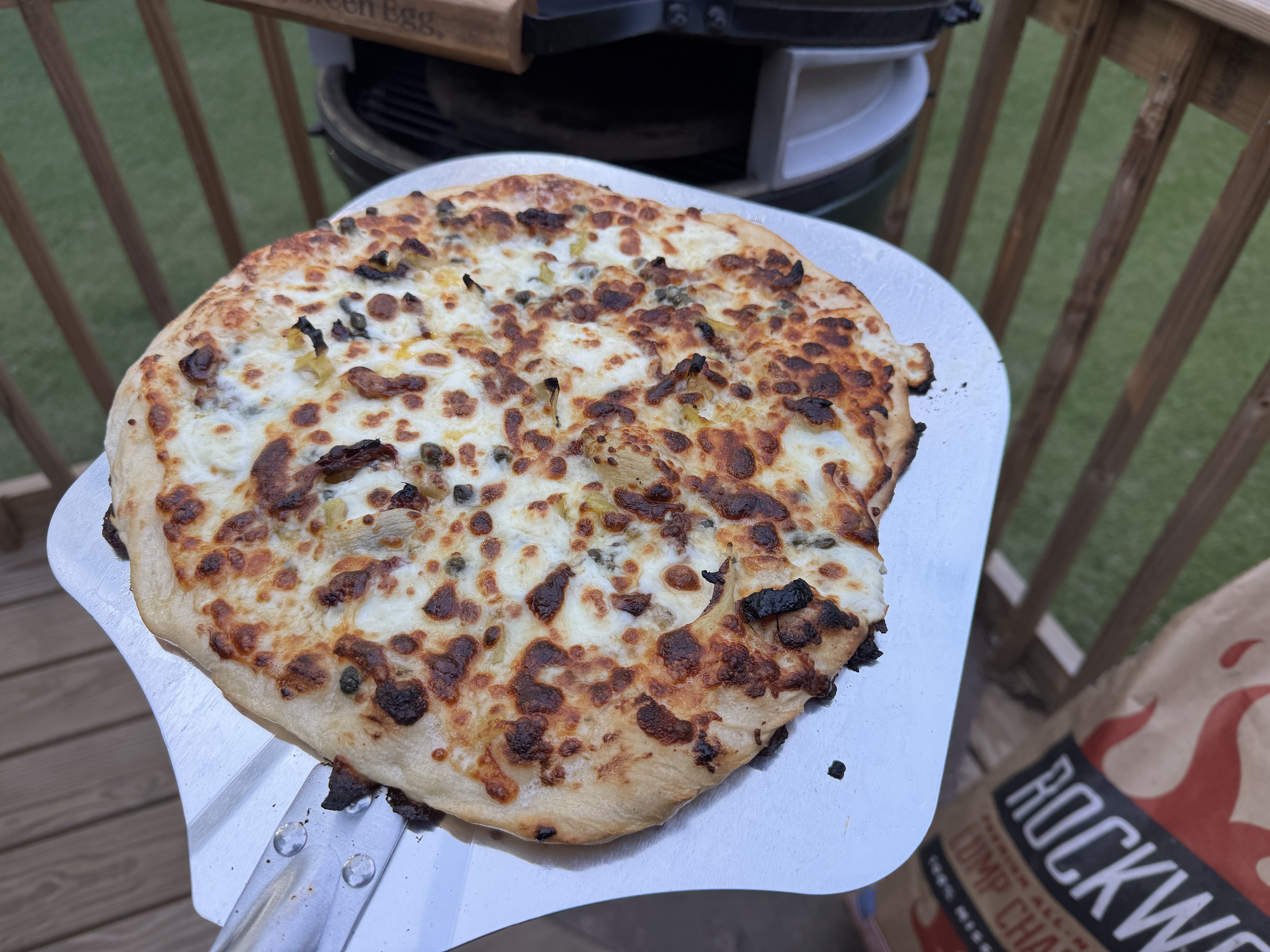Very fun! Temp held around 690 deg F. I think it would have gone a little higher if I had cleaned the ashes out in their entirety. Did 3 and they kept getting better as I expected as the stone got hotter.
