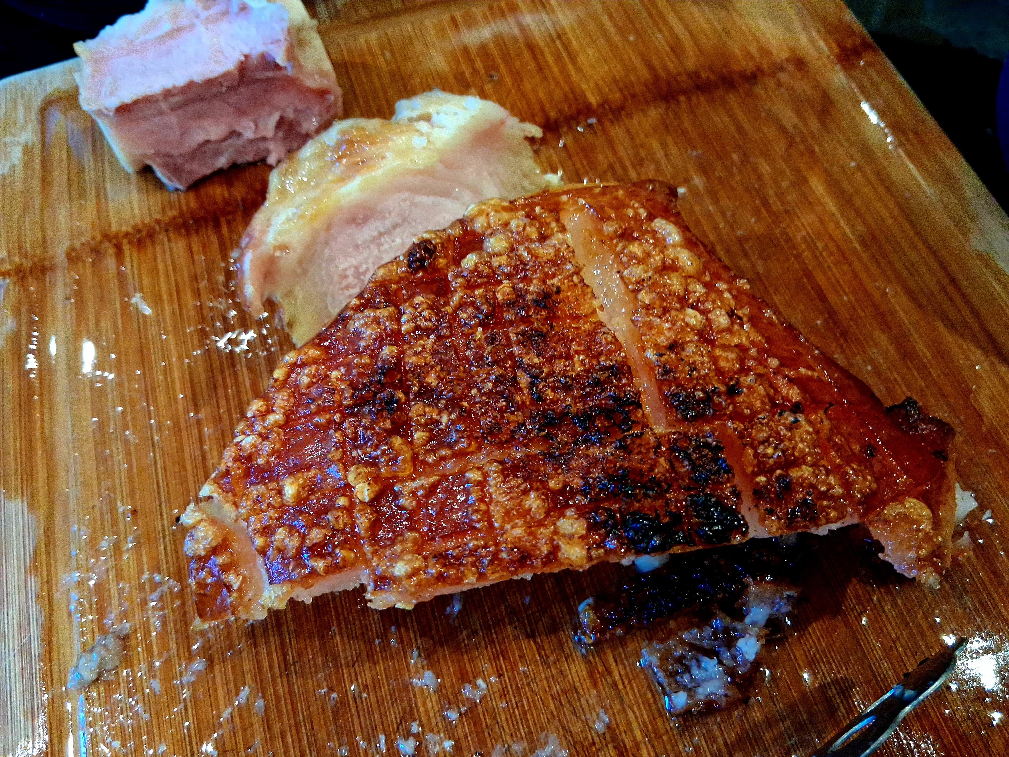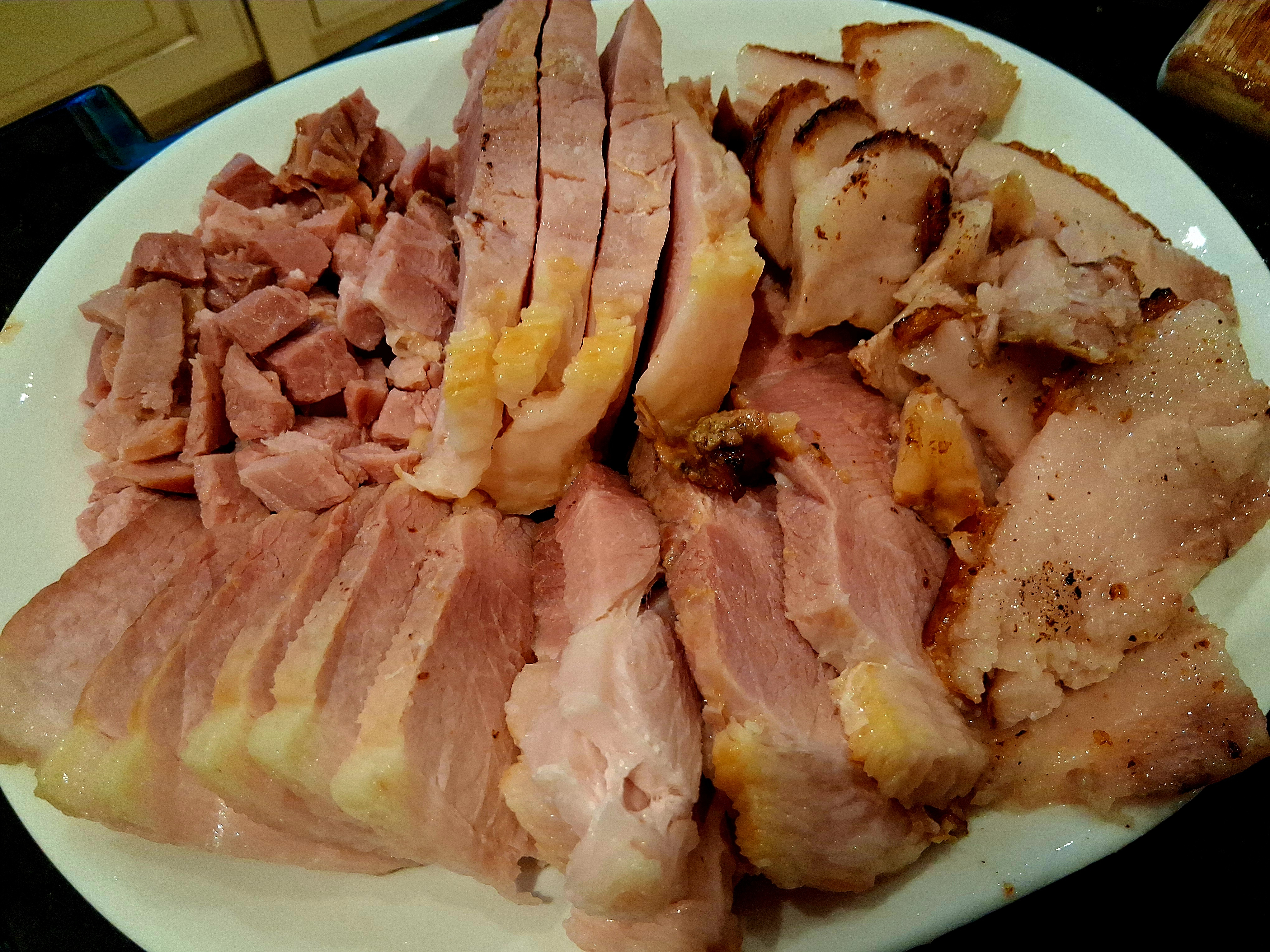 Son-in-law cooked ham and jowl from the farm pig he ordered. I know he fired up the SV, IP, pellet smoker and oven broiler; don't have the deets though.
