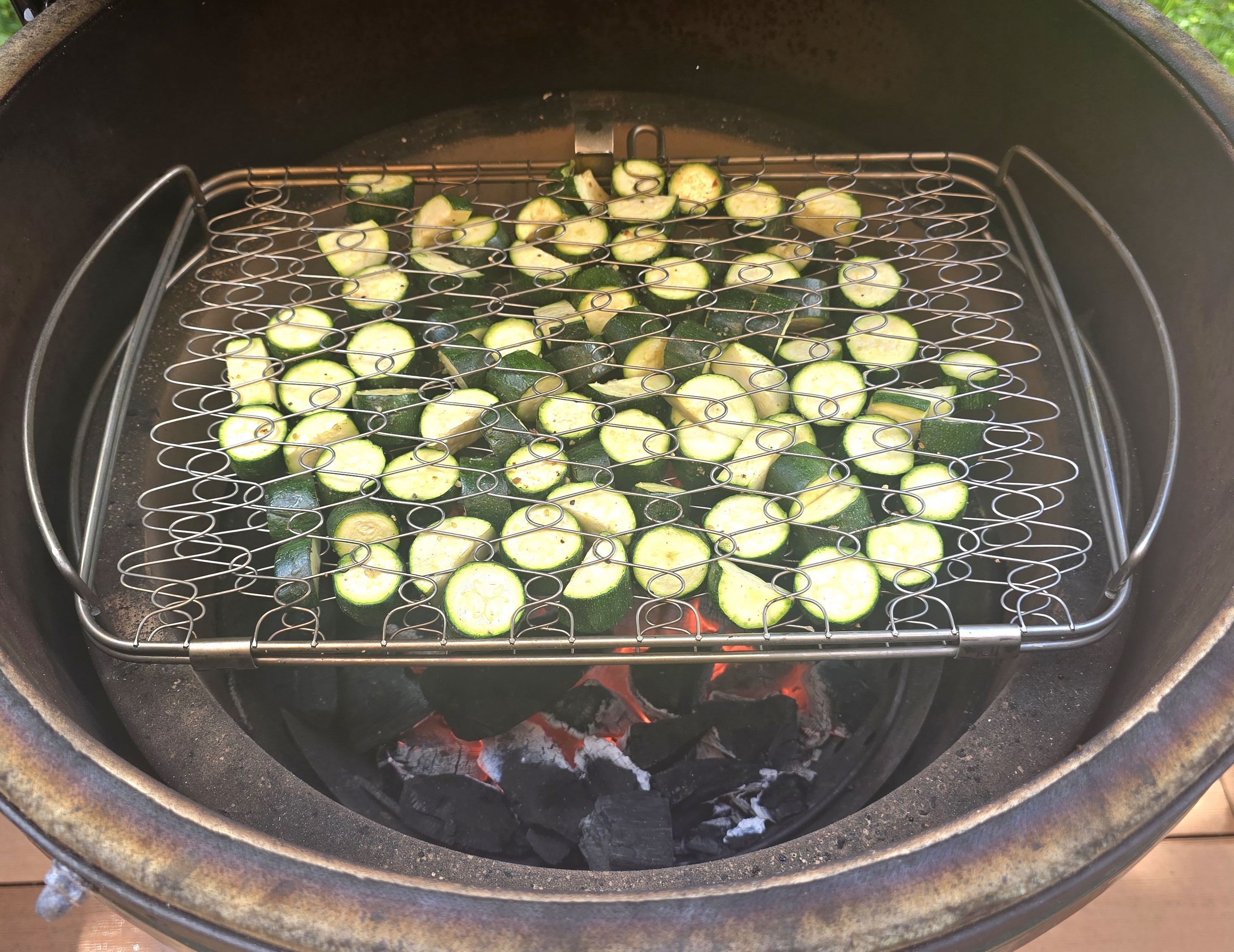 Zucchini as a side and my usual breakfast bread baked on the Egg just for fun