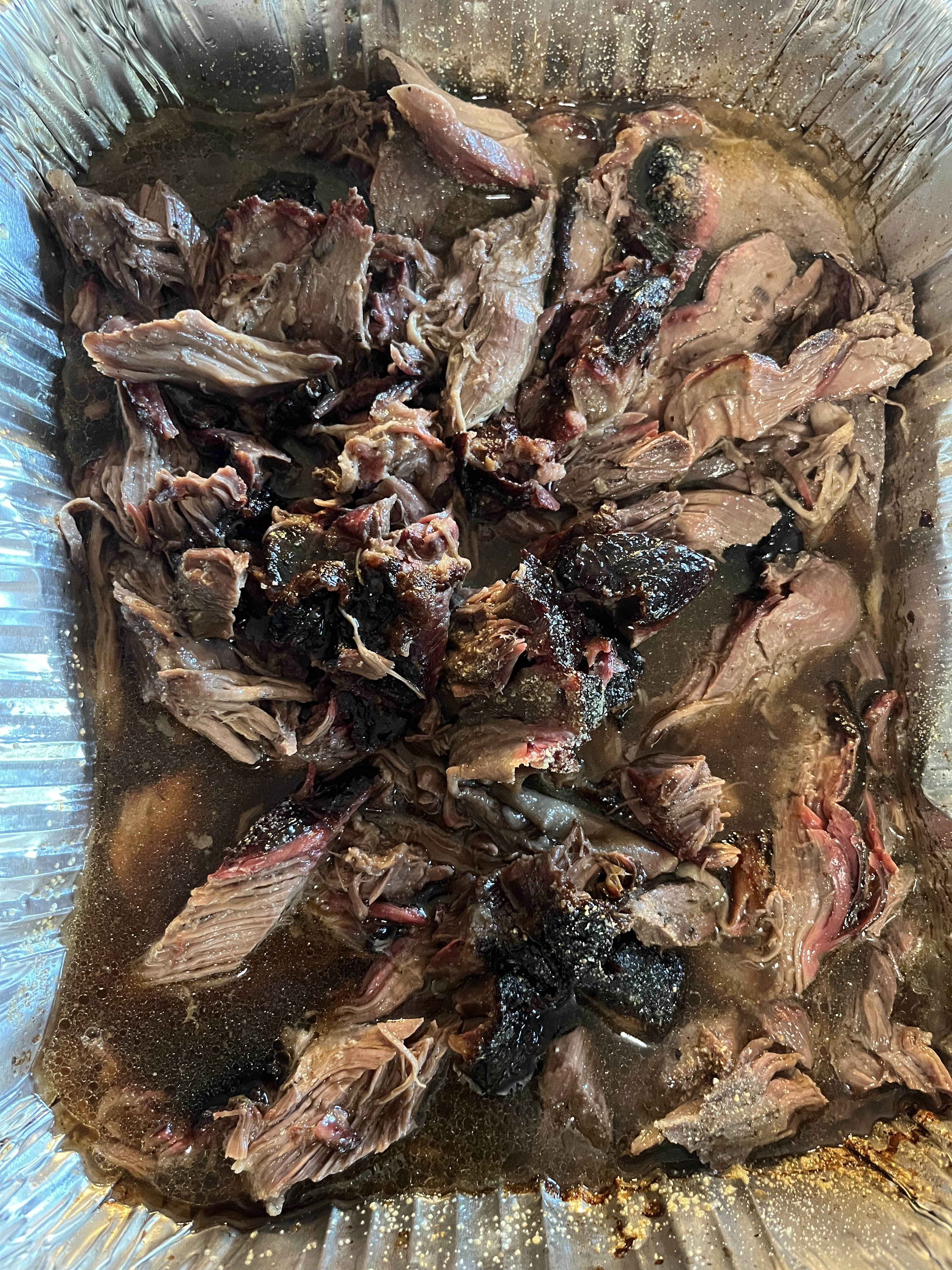 I decided that I’d make it a taco night. I dry brined the meat and it sat in the fridge for about 36hrs. I put it on the egg about 7:30 this morning, while my coffee was brewing. Since I wasn’t caffeinated I forgot to apply any more seasonings. I smoked it with oak indirect at 275 for about 4hrs til it had a nice color and texture, it did still form a little bark.