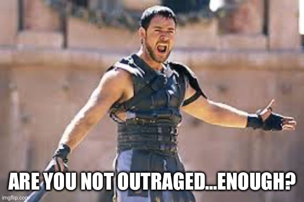 Level of outrage as a loyalty or purity test is a strange way to approach this.